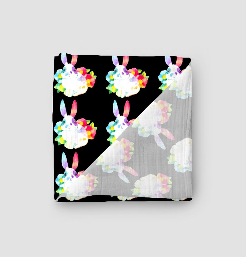 パターン説明 うさぎ+椿の花のカラフルでかわいいパターンです。