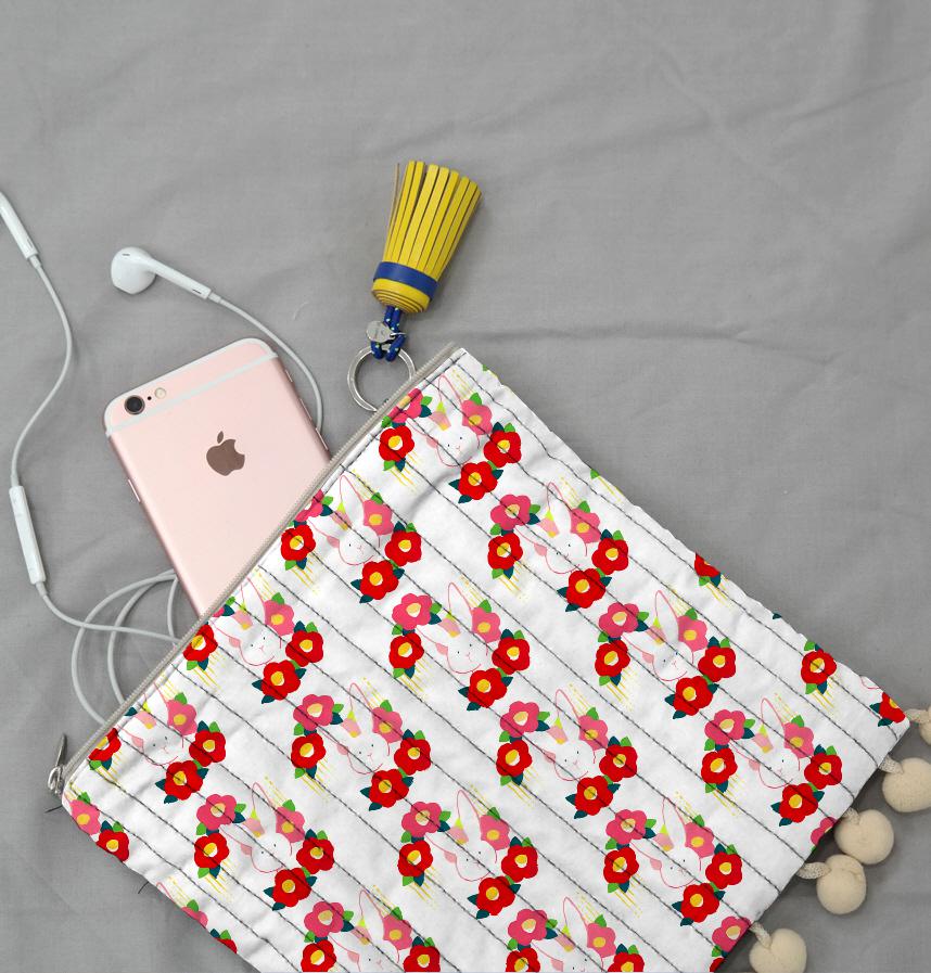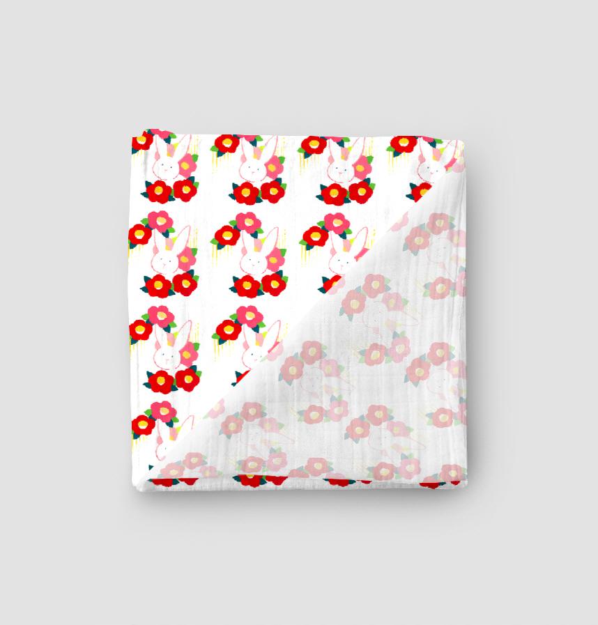 子うさぎと椿の花のパターンです。
