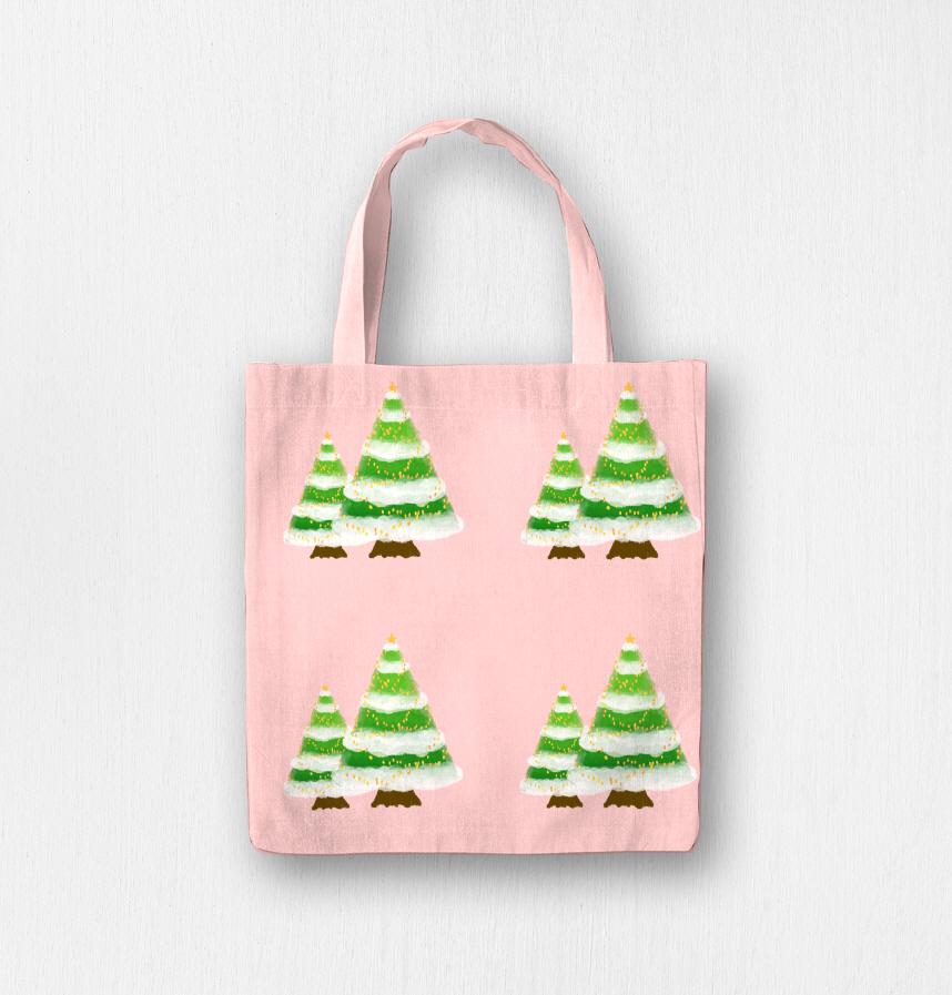 パターン説明 ピンク背景の温かい雰囲気のあるクリスマスツリーのパターン