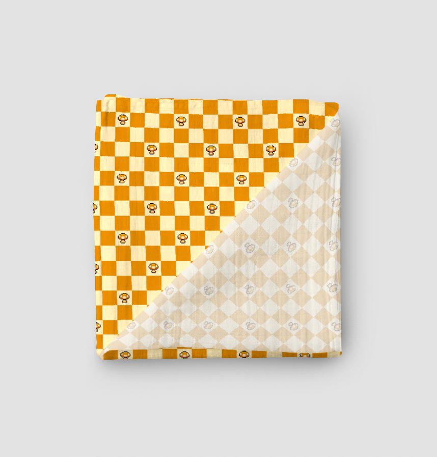 パターン説明 格子柄の中に、ちょいちょいキノコを配置したデザインです。