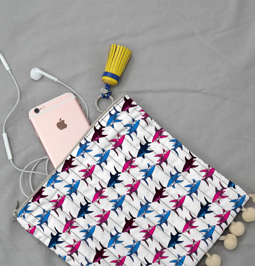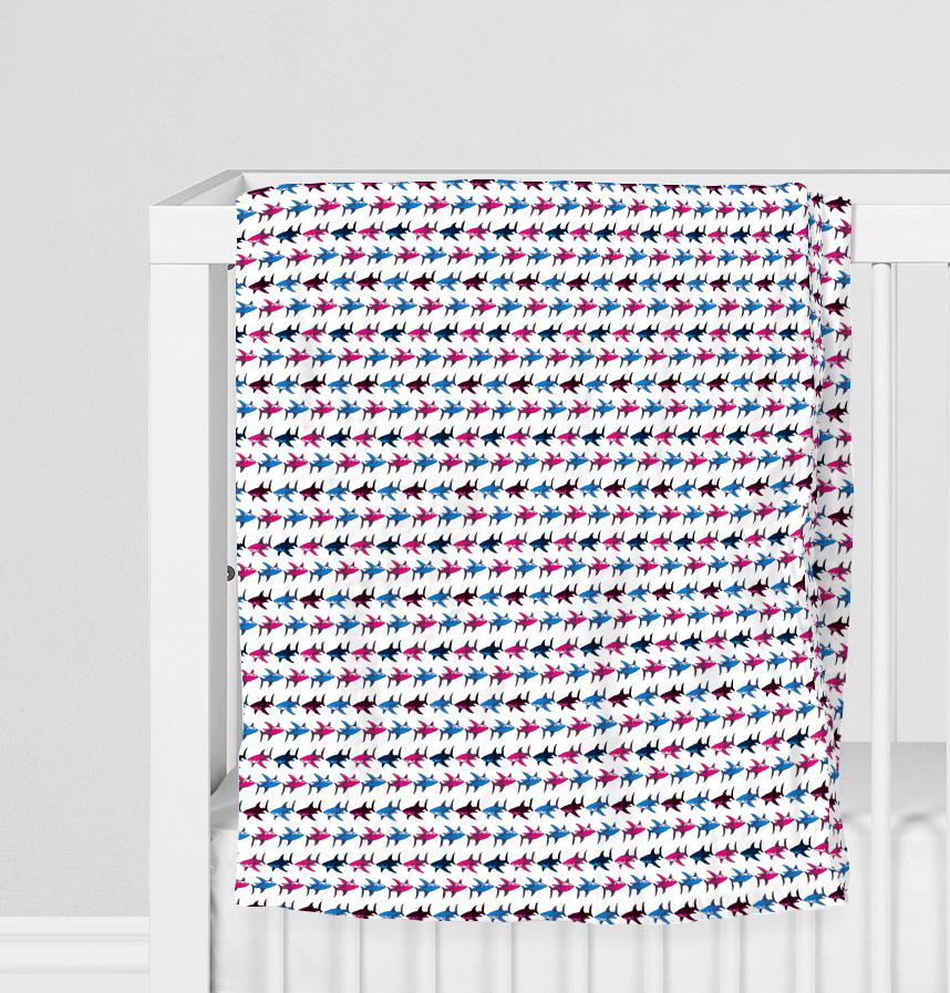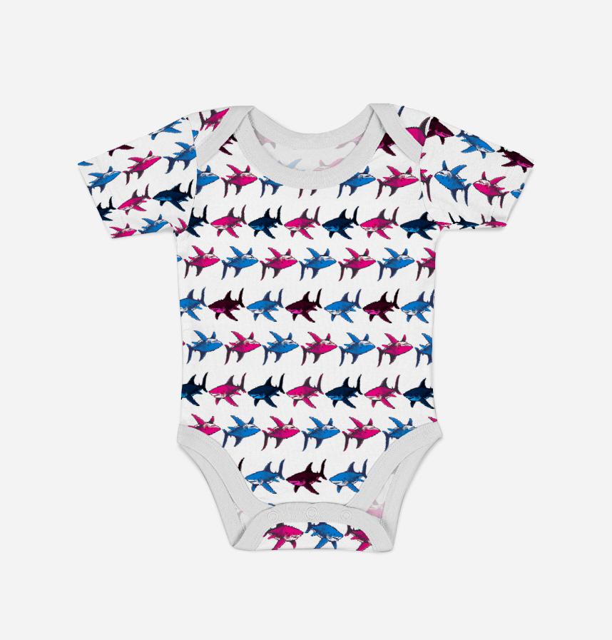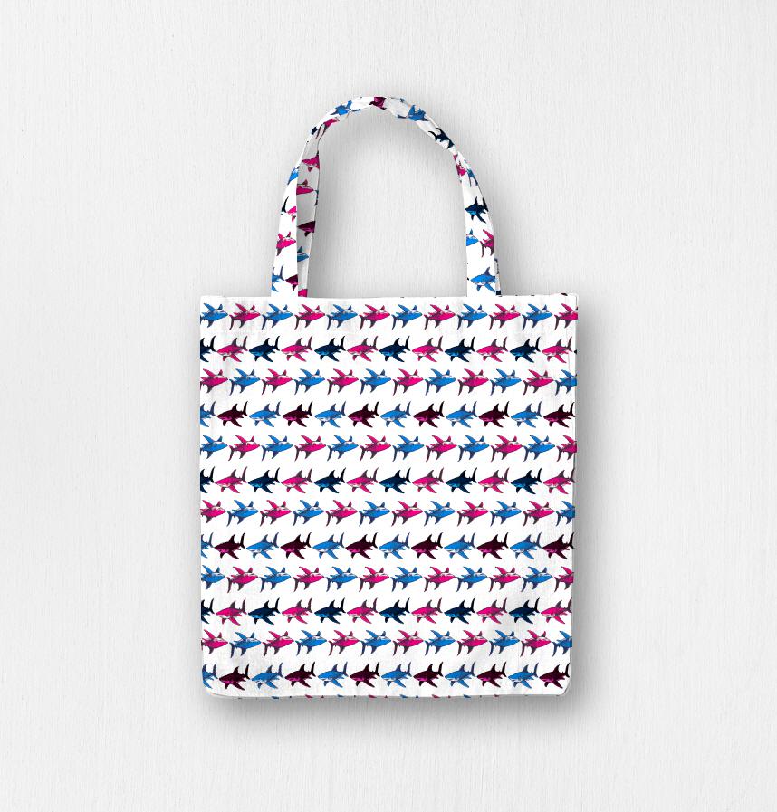ピンクとブルーのサメが交互に並ぶデザイン
