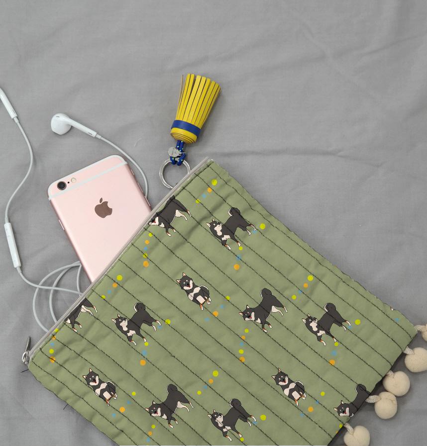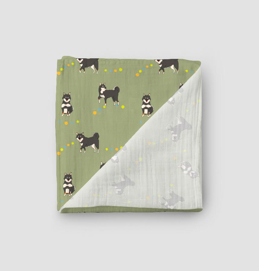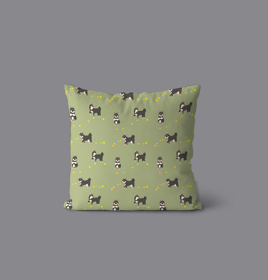 パターン名 わんこシリーズ「黒柴犬のお散歩」抹茶背景