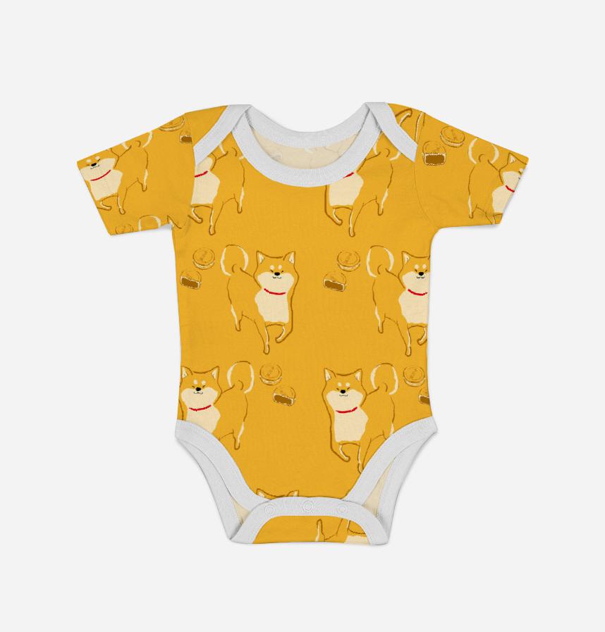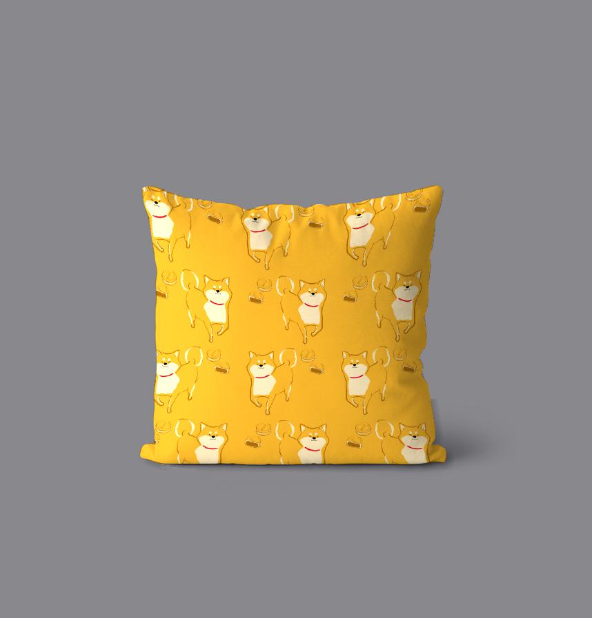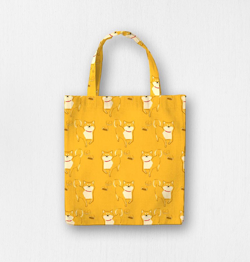 にこにこ顔の茶柴犬と今川焼きの組み合わせ。背景の色合いを基調とした柄で作ってみました。和犬と和菓子の組み合わせで左向き右向きで組み合わせています。