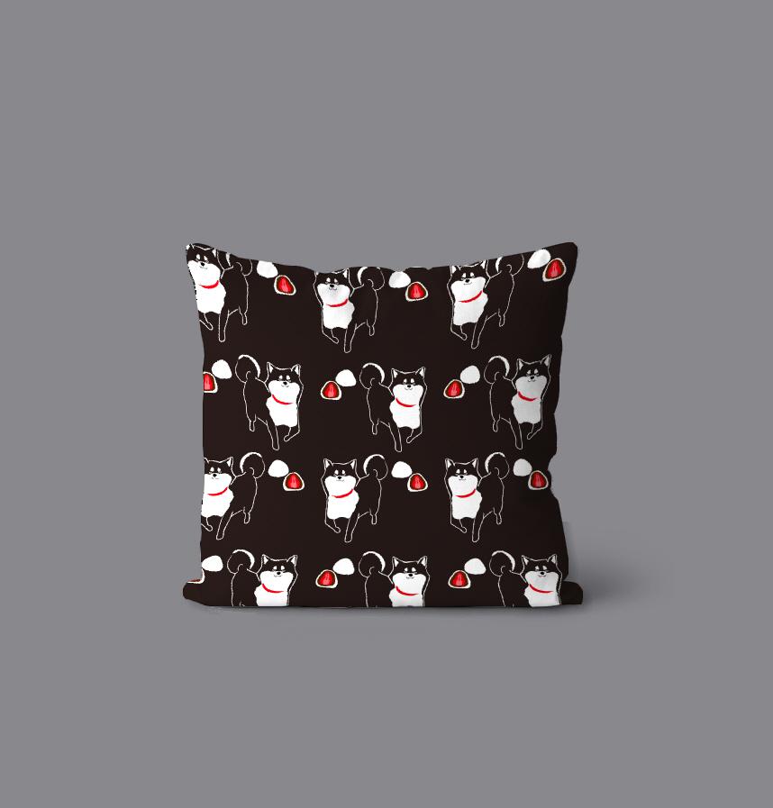パターン説明 黒柴犬(和犬)といちご大福(和菓子)の組み合わせ。