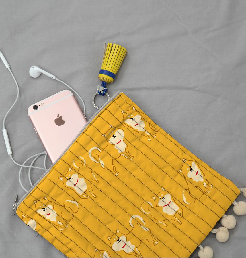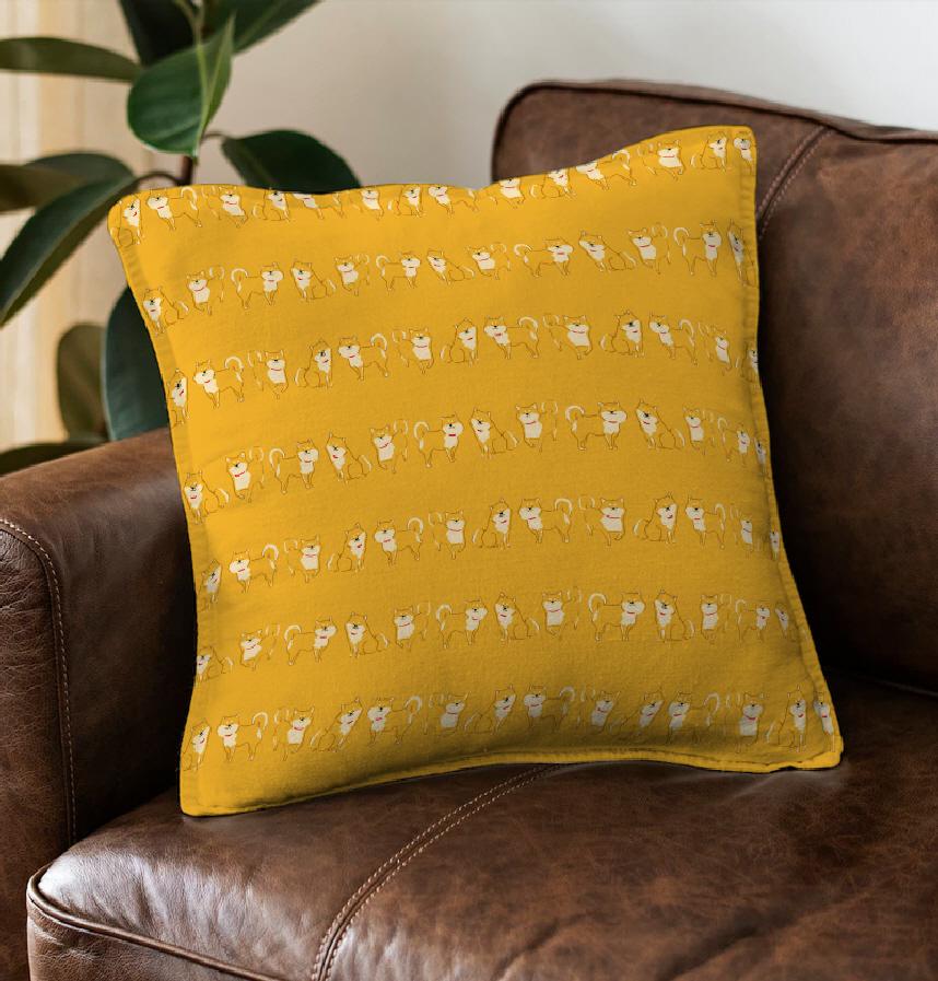 にこにこ顔茶柴犬を3パターンのポーズを横並びにしてみました。背景の色と同化させて全体も部分も茶柴犬色と柄に。