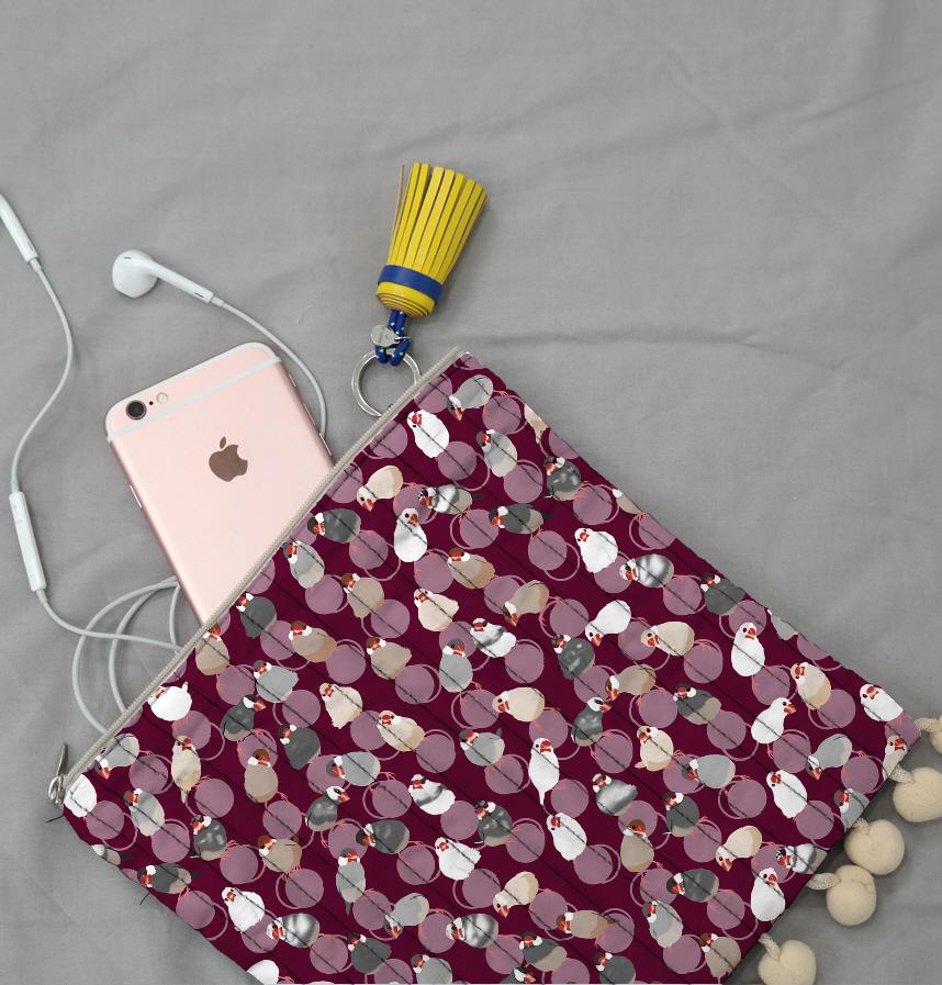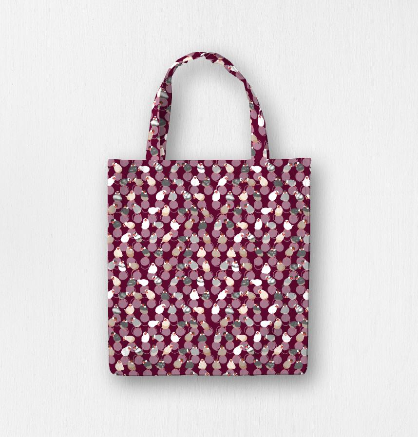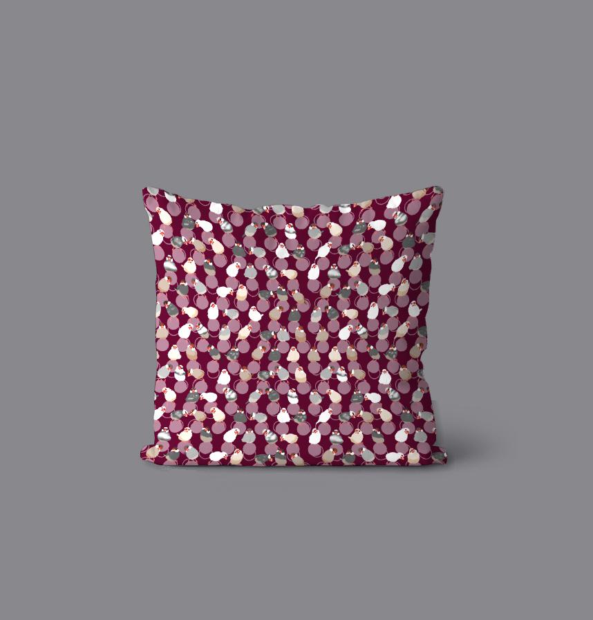 パターン名 文鳥繚乱(文鳥いっぱい)えんじ背景(サムネイル約24cm四方)New:色味調整