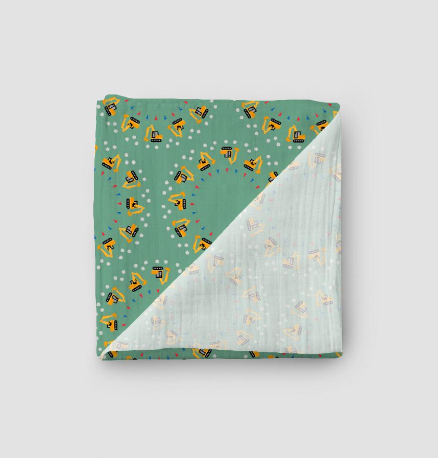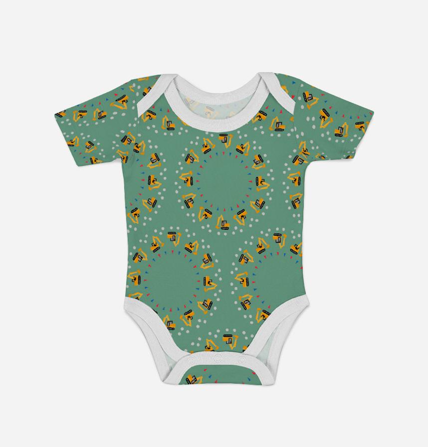 パターン説明 ショベルカーを円形に配置したパターンです。周囲の土砂、カラフルなカラーコーンがアクセント。