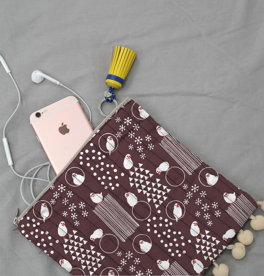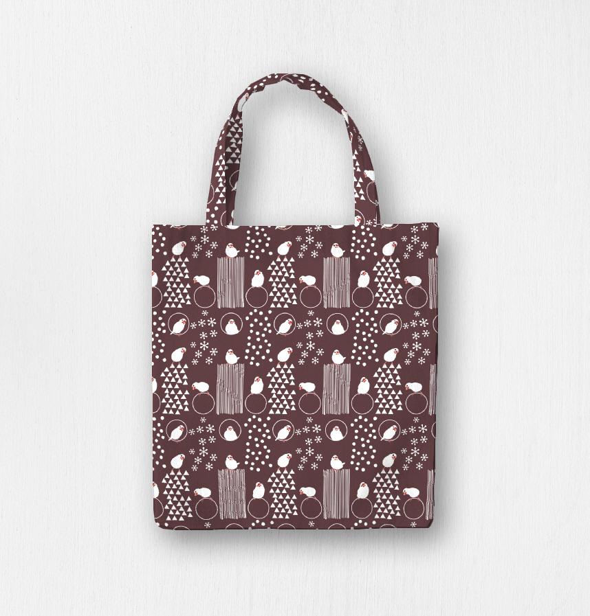 落ち着いた色味の北欧風なちょっと縦長模様に白文鳥を散りばめました(サムネイル約16cm四方)。