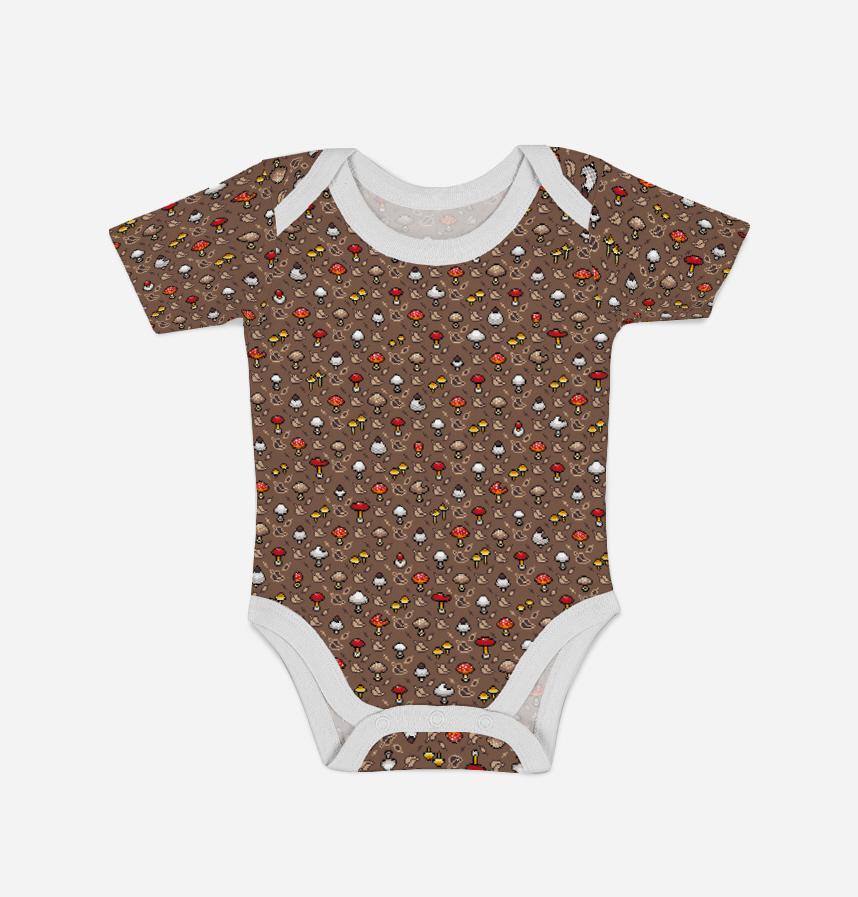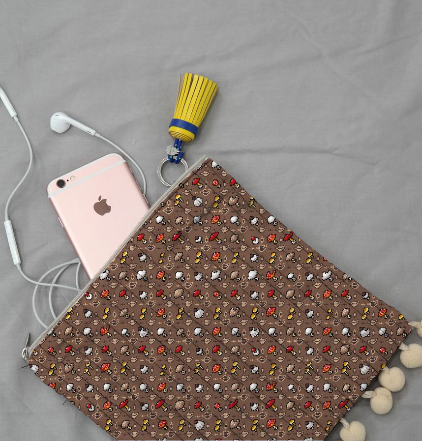 パターン説明 ピクセルアートでできたいろんなキノコと葉っぱのデザインです。