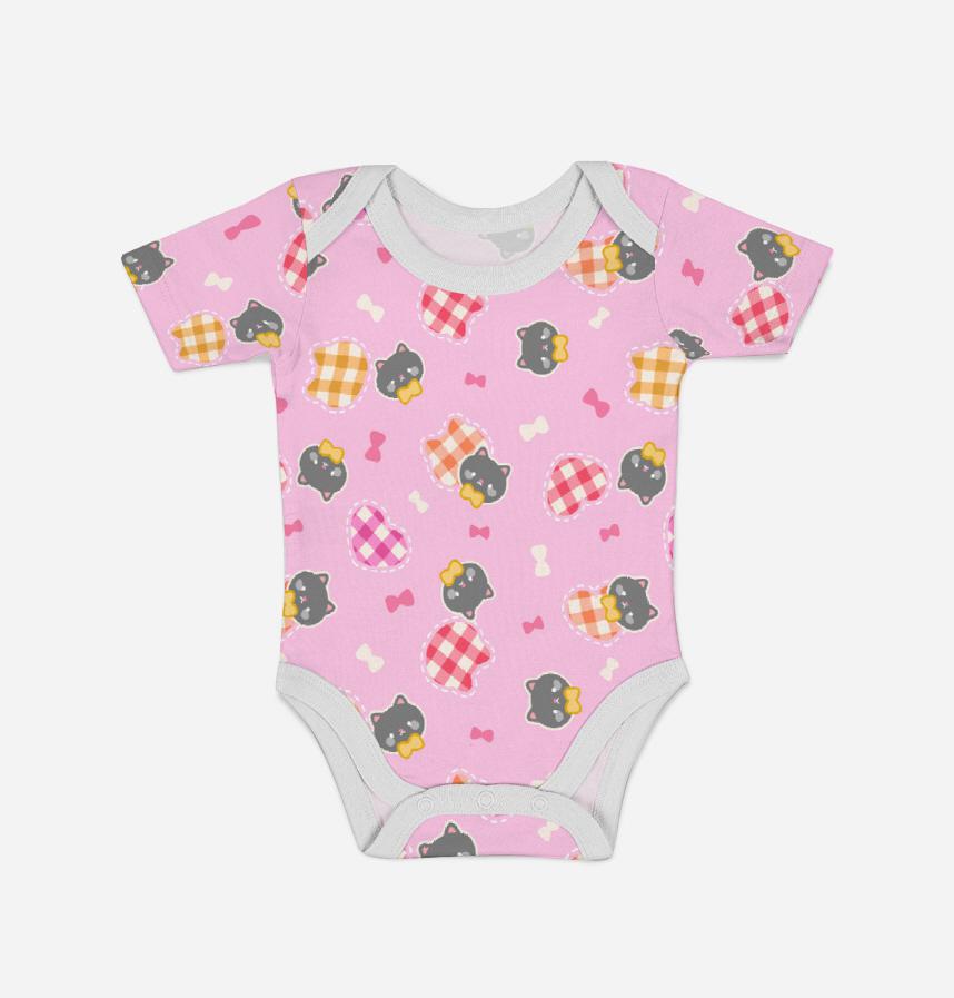 パターン説明 猫とハートとリボンが並んだデザインです。