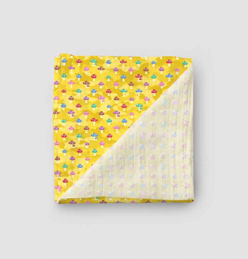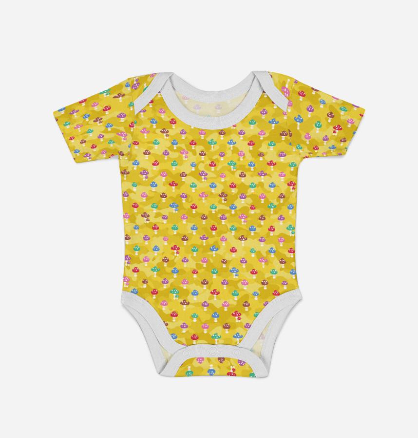 パターン説明 迷彩柄とカラフルなキノコのデザインです。