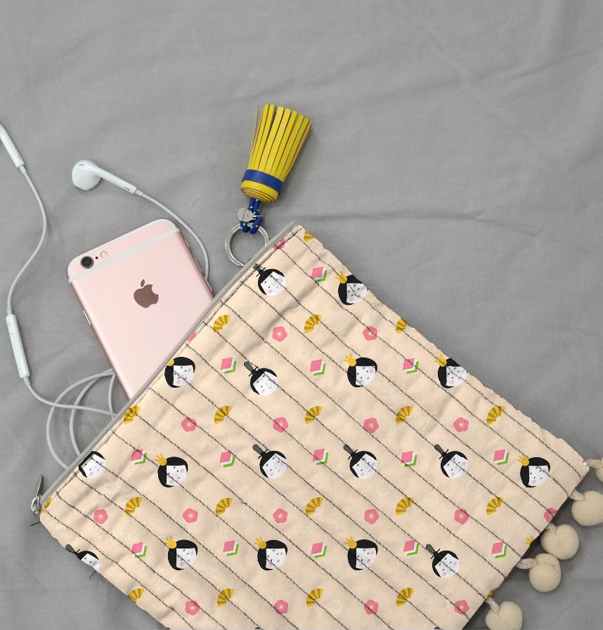 ひなまつりのアイテム作りに!かわいいアイコン模様の生地です。