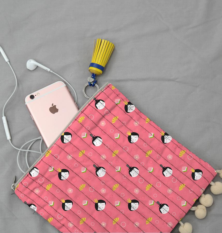 ひなまつりのアイテム作りに!かわいいアイコン模様の生地です。