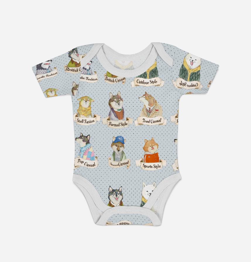 パターン名 わんこシリーズ「柴犬ファッション図鑑」_ブルーグレーの背景
