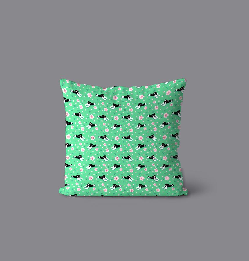 パターン説明 桜とミニチュアシュナウザーをグリーンベースでパターン化しました