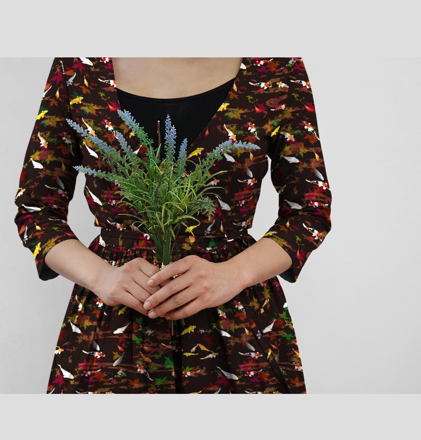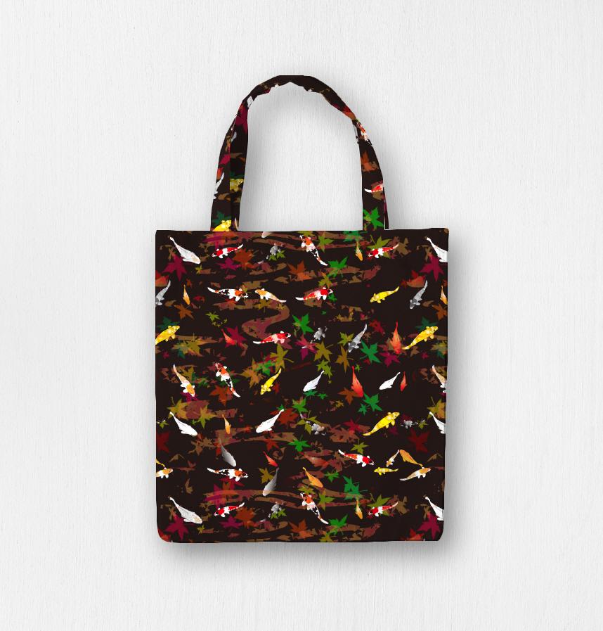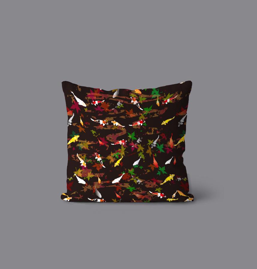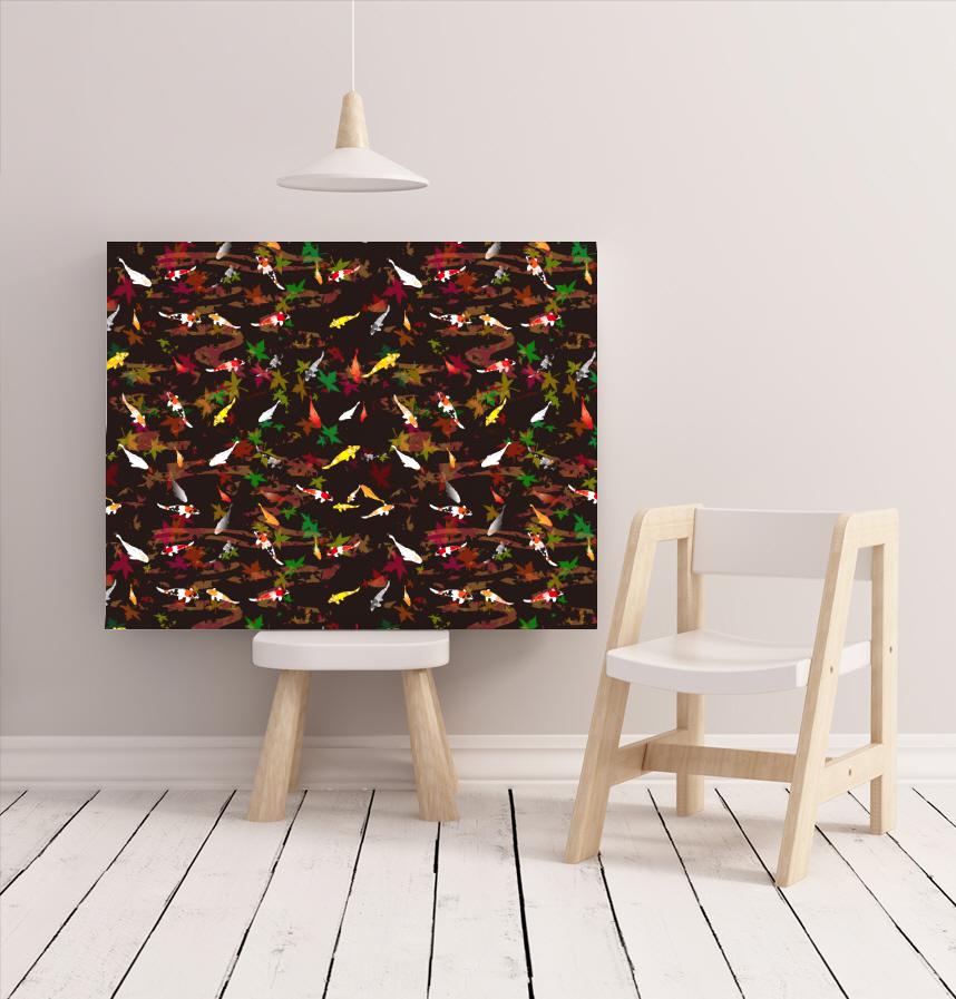 月明かりにキラキラともみじが漂う中、色とりどりの鯉が優雅に泳いでいる様子をデザインしてみました。