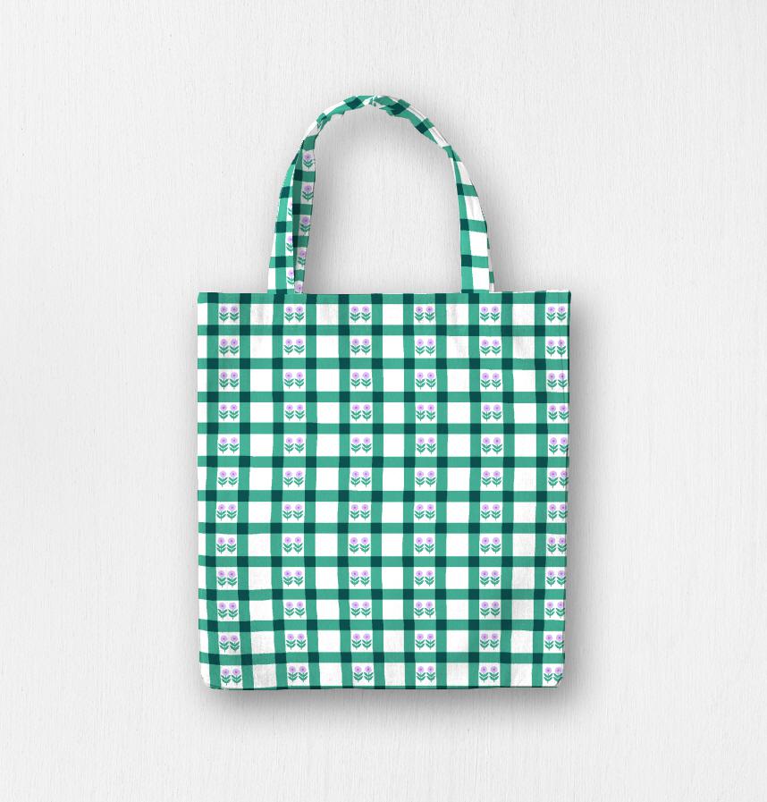 パターン説明 チェックラインとフラワー
