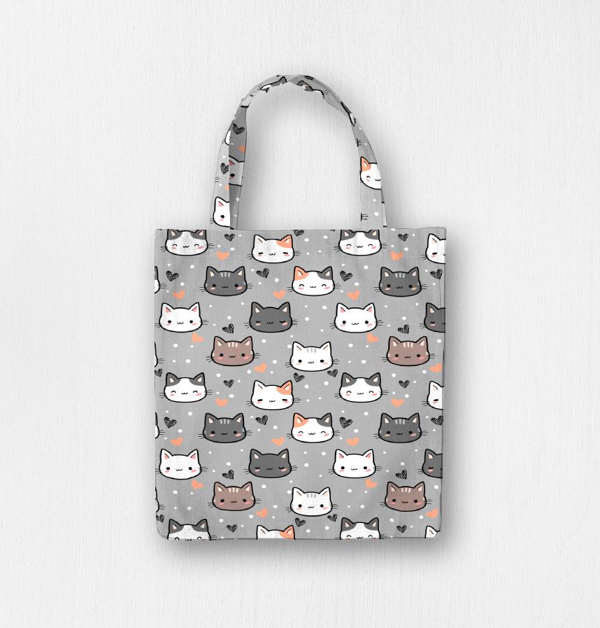パターン名 かわいいニャンコとハートのパターン - グレー