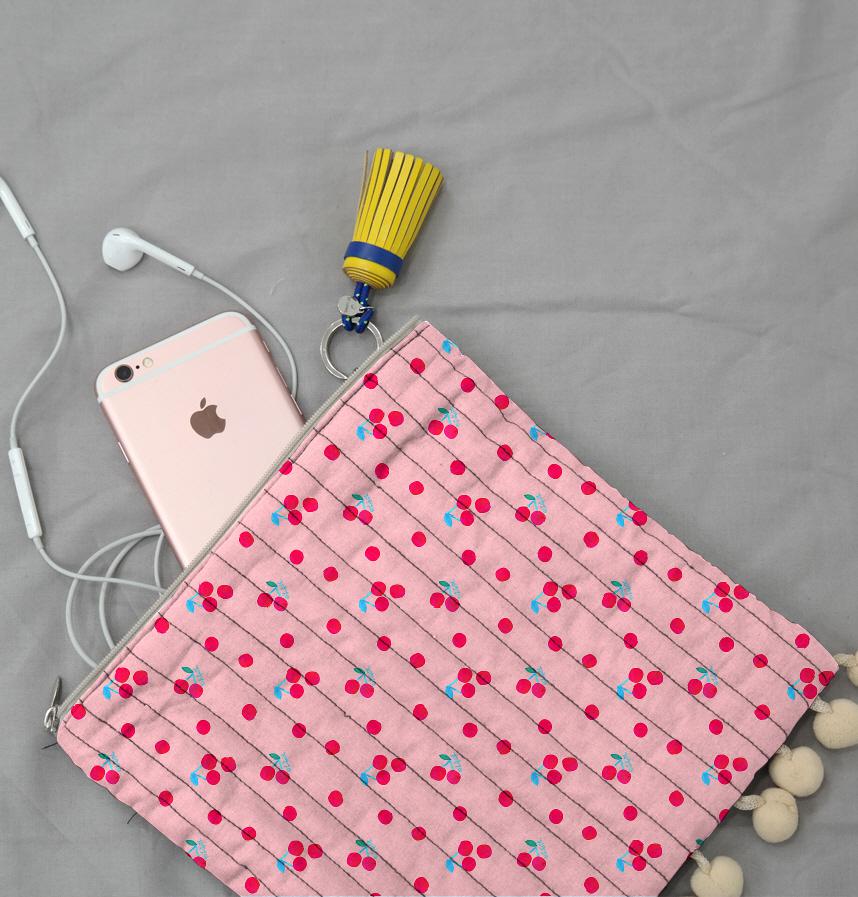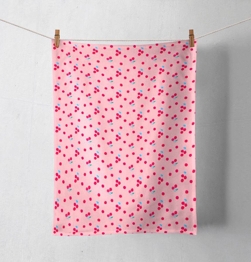 パターン説明 細かいミニパターンチェリーが魅力的なファブリックデザイン