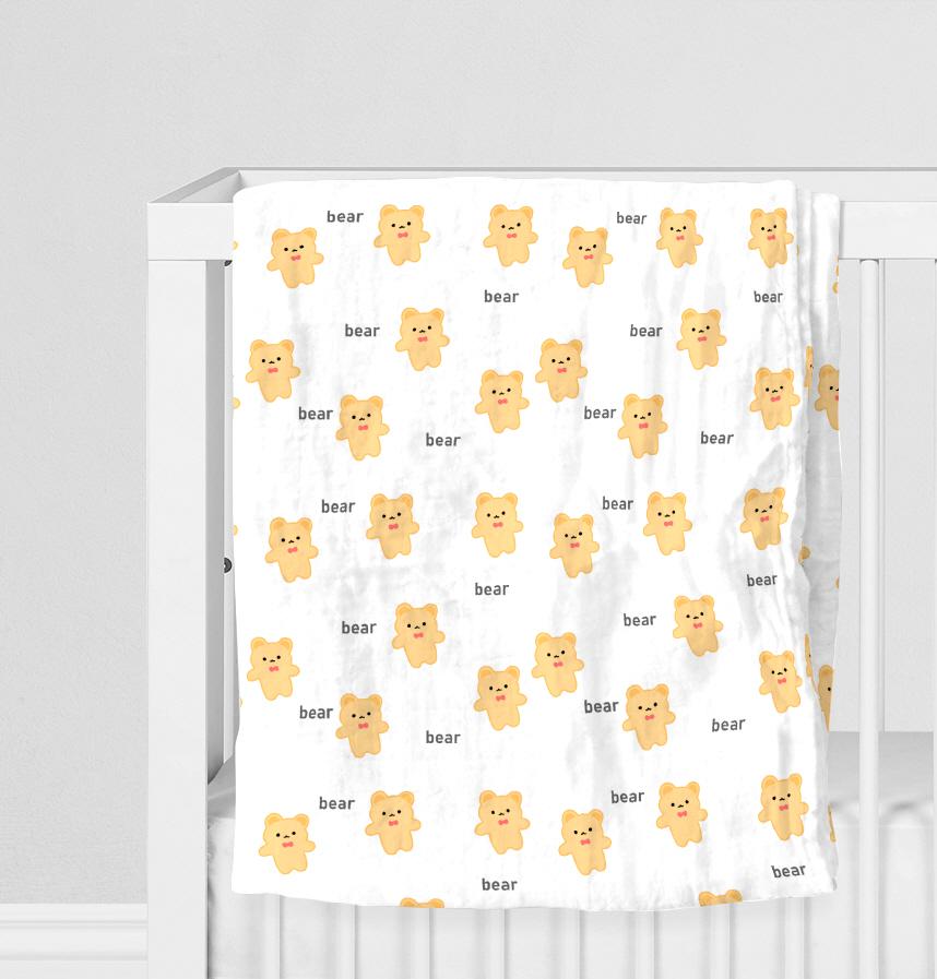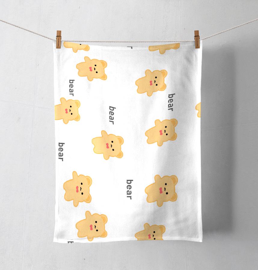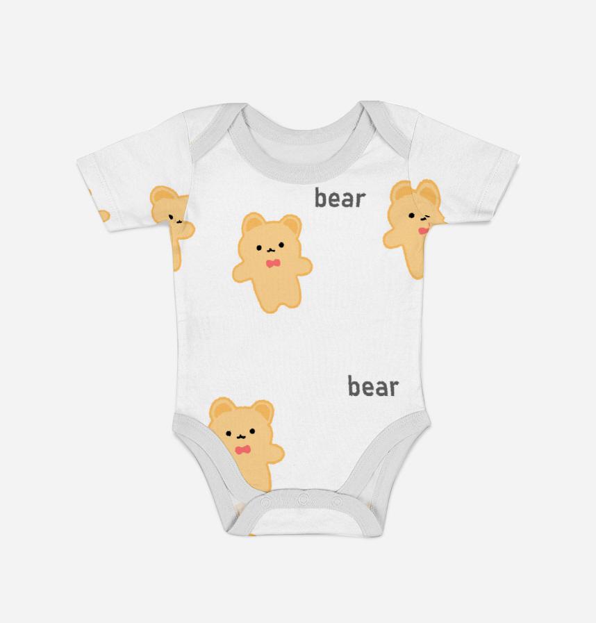 手描き感を生かしピンクのリボンがかわいいくまです。