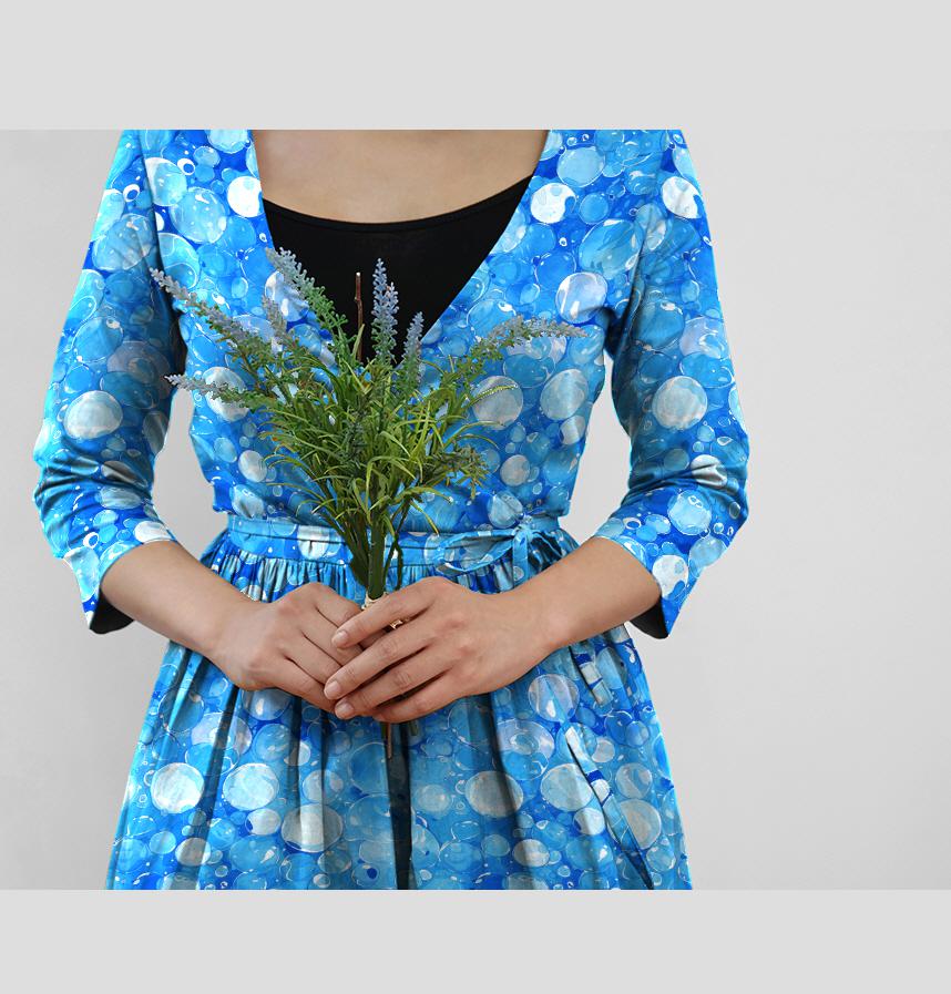 この柄はただの模様ではなく、 心の中に潜む物語を呼び覚ます。 水辺の思い出、広がる未来への憧れ、 青き泡の魔法にかけられて。