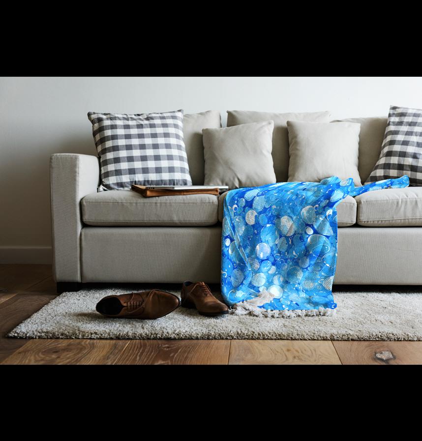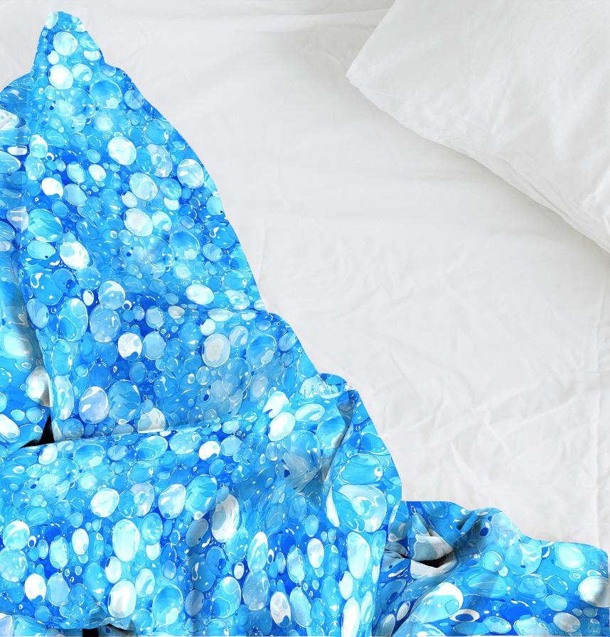 青い泡は、布に刻まれたリズム、 生活の一部として息づく。 カーテン越しに漂う海の香り、 クッションから伝わる波の音。