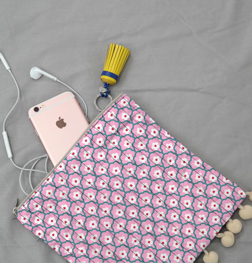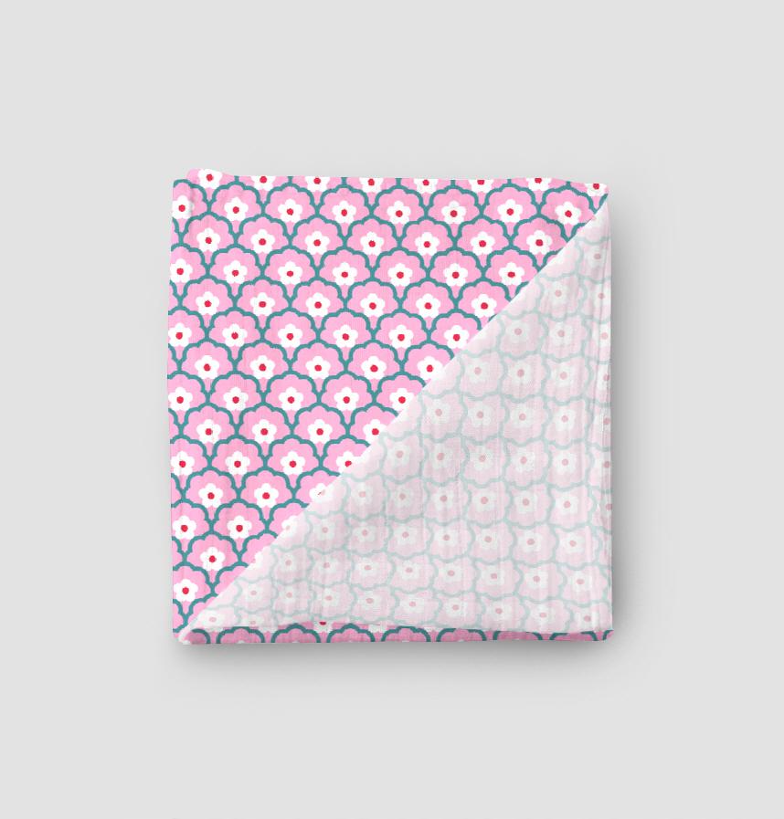 ドングルドングルした花の中の花が繰り返されるパターンでレトロな感じを与えました。