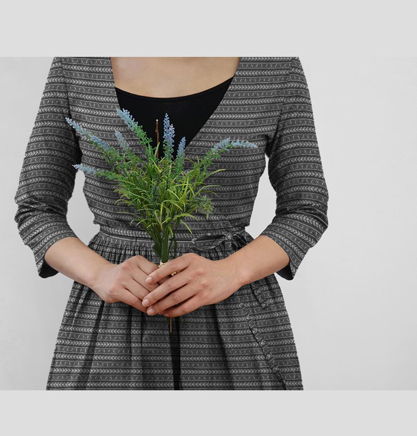 パターン名 ストライプ&ジグザグ草の葉 - チャコール