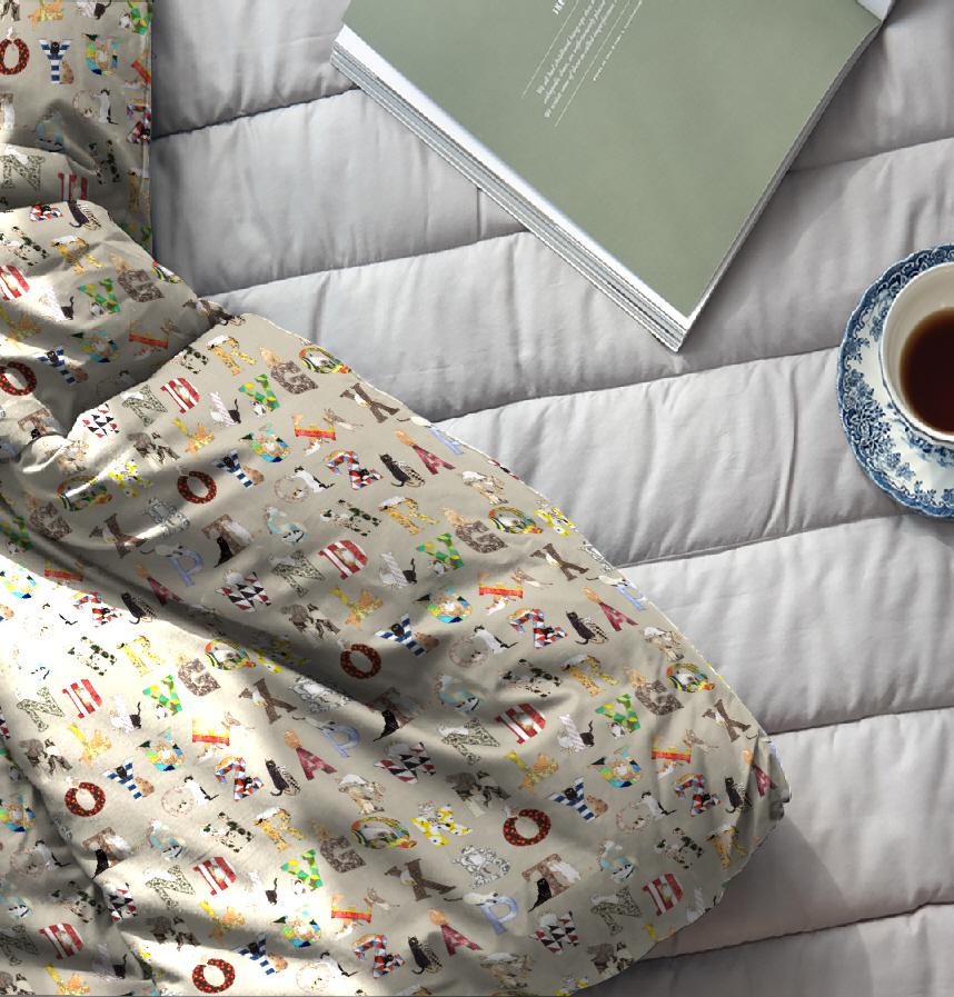 アルファベットは一つ一つ異なる柄で明るく楽しい雰囲気です。