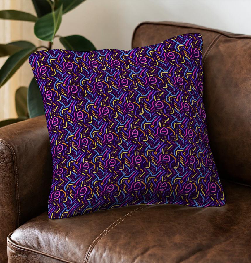 このデザインは、80年代のレトロ感を思わせるネオン色の抽象的なジオメトリックパターンです。さまざまな長さと方向の線が交差し、ネオンライトを連想させるカラーコントラストを介して視覚的にユニークなパターンを作成します。このパターンは、ダイナミックな動きとデジタル世界のテクノ感を組み合わせることで、モダンなインテリアやグラフィックデザイン要素に適しています。