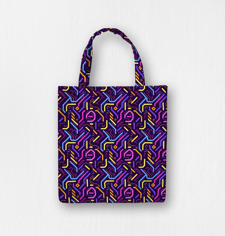 パターン説明 このデザインは、80年代のレトロ感を思わせるネオン色の抽象的なジオメトリックパターンです。さまざまな長さと方向の線が交差し、ネオンライトを連想させるカラーコントラストを介して視覚的にユニークなパターンを作成します。このパターンは、ダイナミックな動きとデジタル世界のテクノ感を組み合わせることで、モダンなインテリアやグラフィックデザイン要素に適しています。