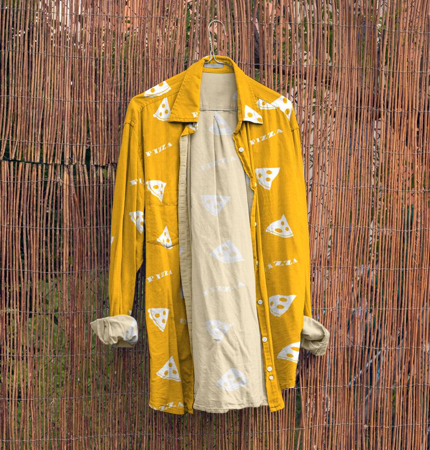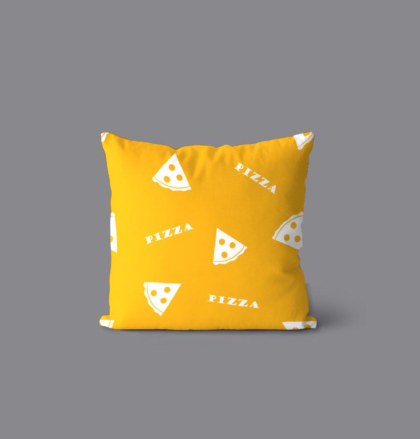パターン説明 シンプルなピザのシルエットと文字のデザインです。