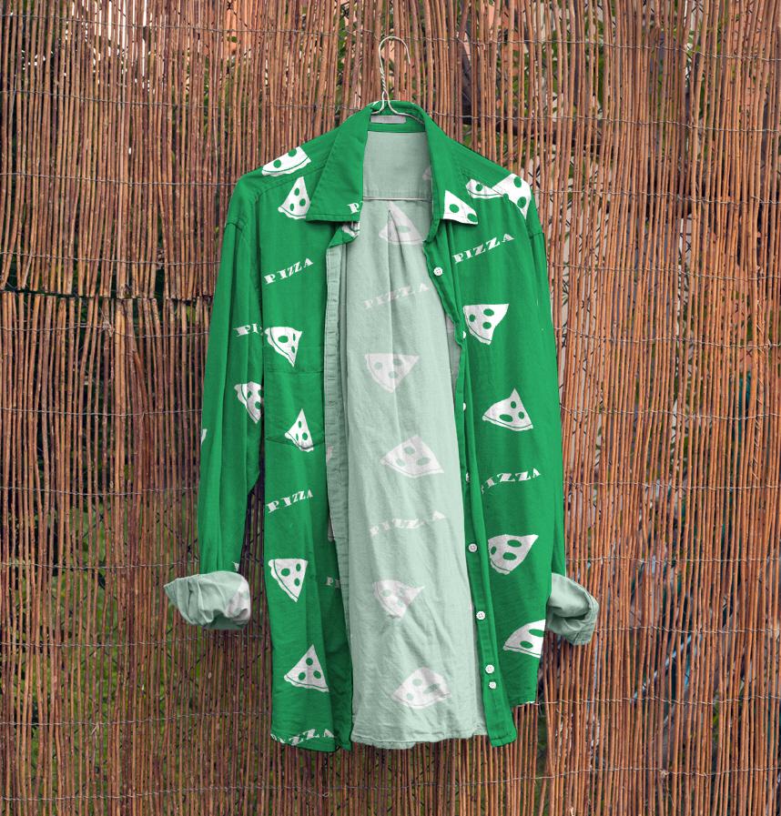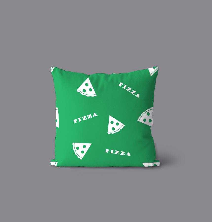 パターン説明 シンプルなピザのシルエットと文字のデザインです。