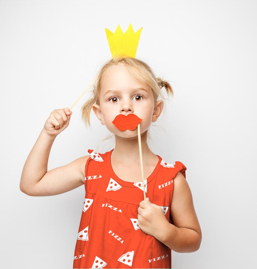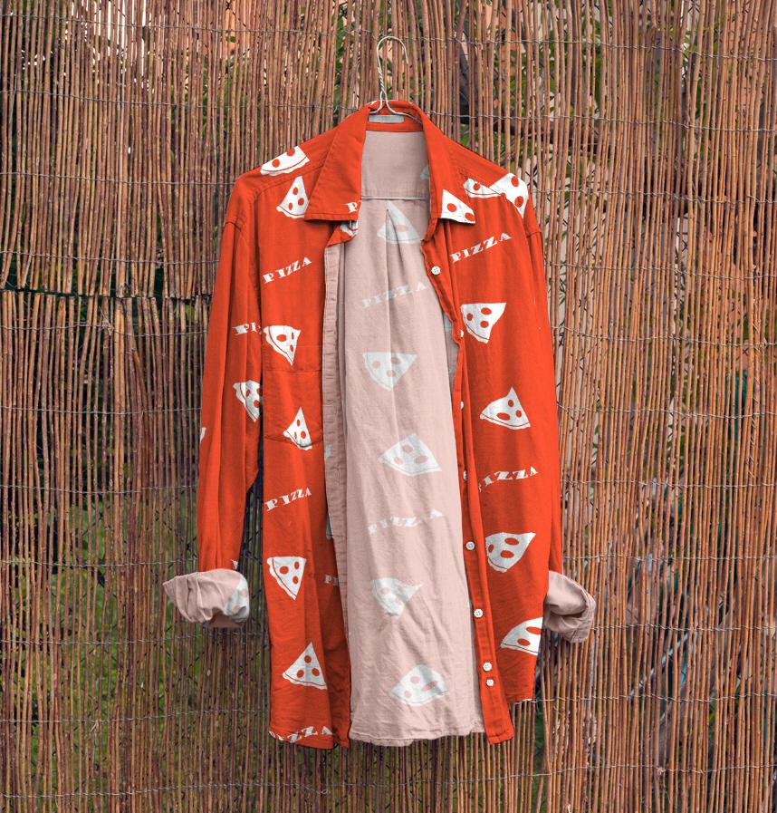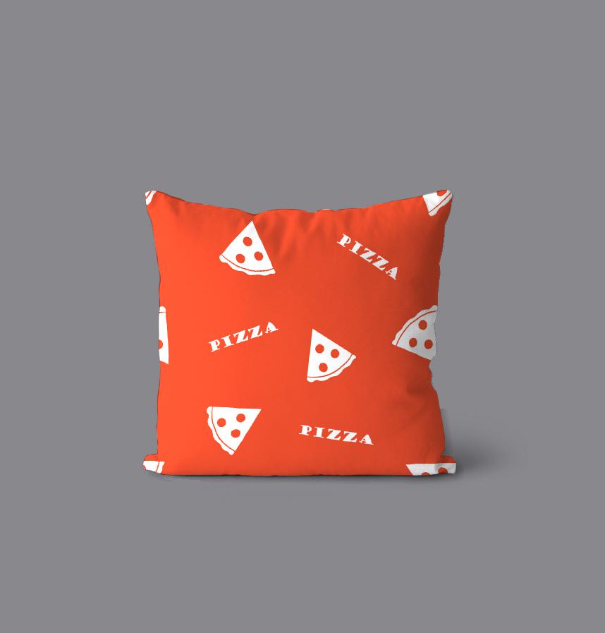 パターン説明 シンプルなピザのシルエットと文字のデザインです。