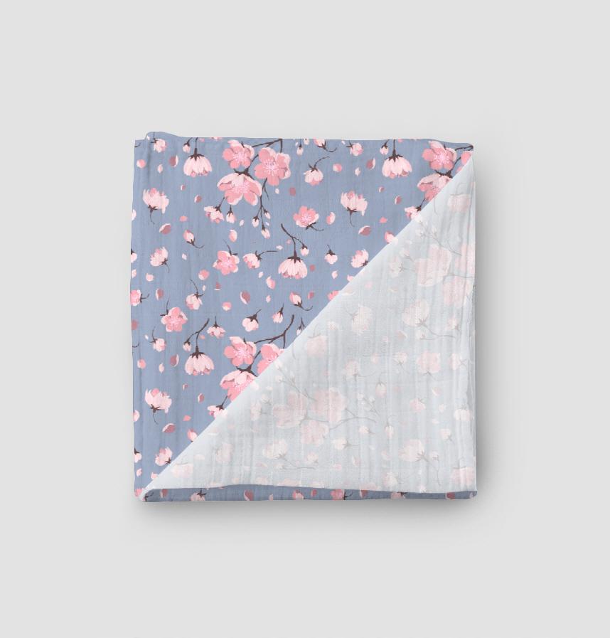 夕方の空を背景に飛ぶ桜をデザインしました。