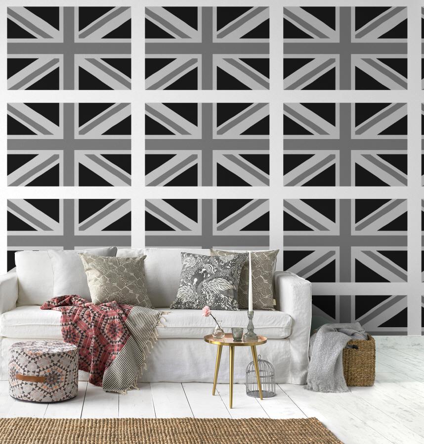 パターン説明 シックなモノトーン(白黒)の英国国旗(ユニオンジャック)です。