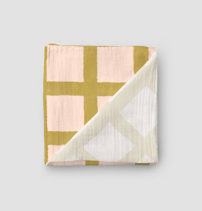パターン名 手書き水彩チェック_イエロー×ピーチ