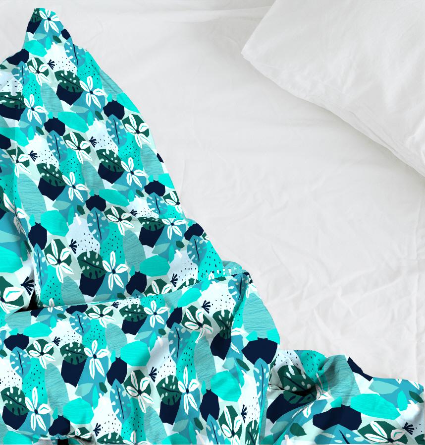 パターン名 花と葉っぱの抽象パターン - クールミント