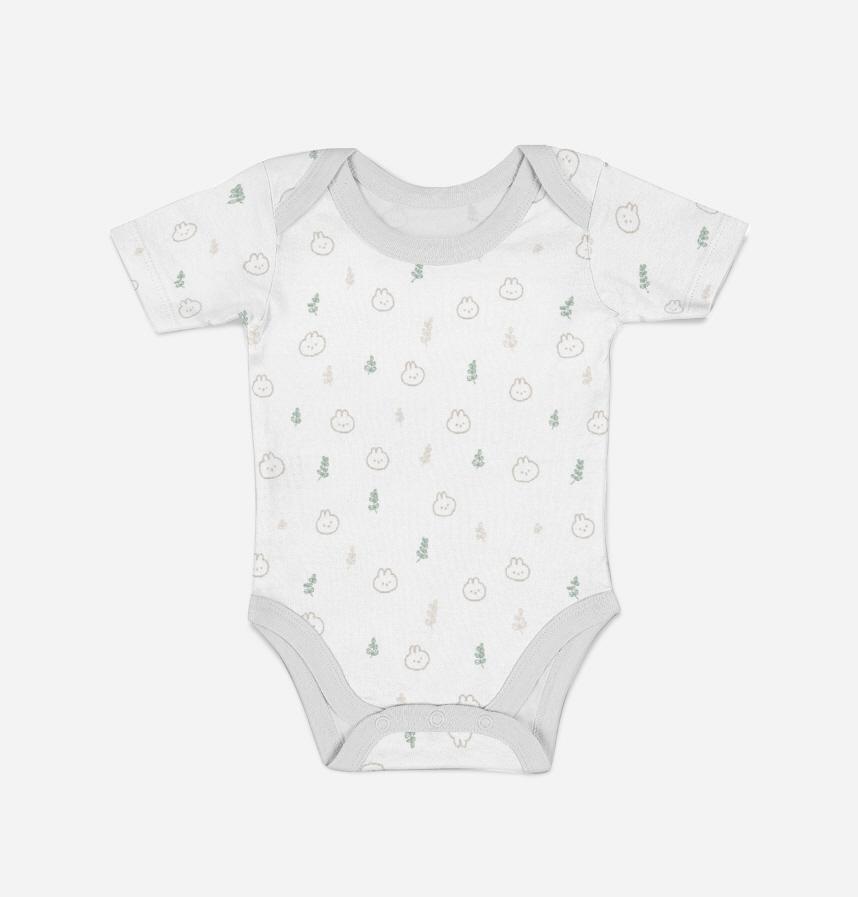 パターン説明 手描きのうさぎと葉っぱデザイン