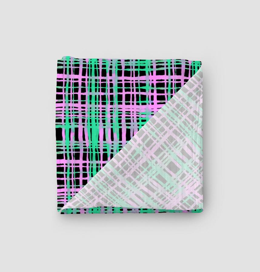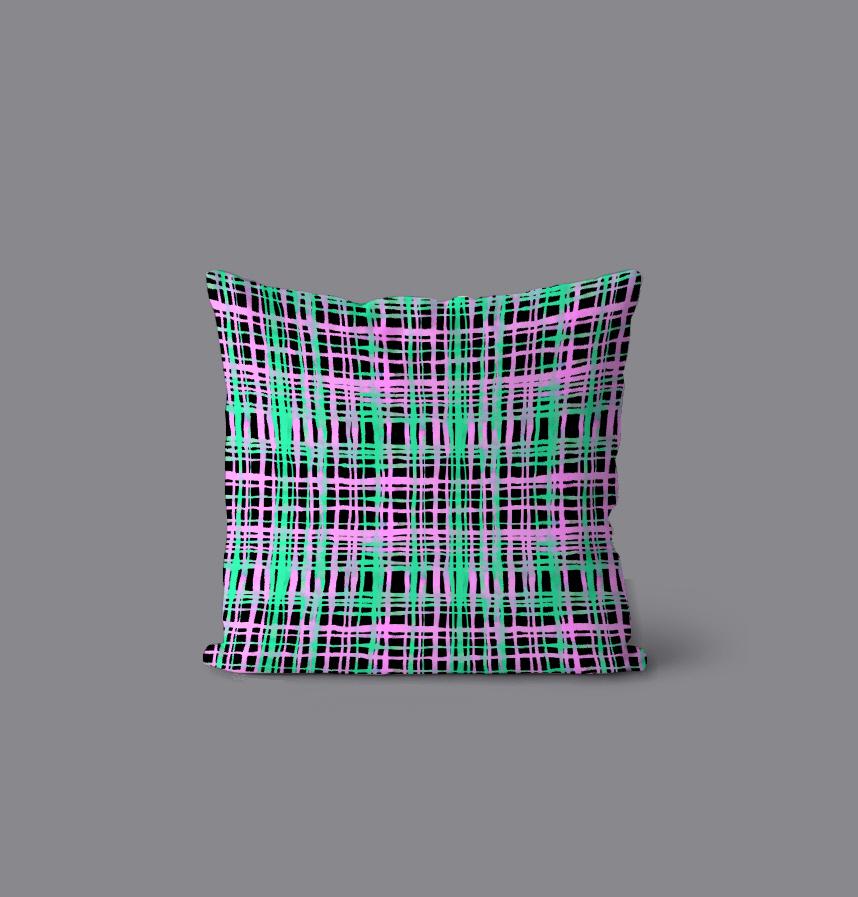 パターン説明 水彩画のような線画を活用したチェックパターンでブランケット、シャツ、クッションなど様々な小物に活用できるデザインです。