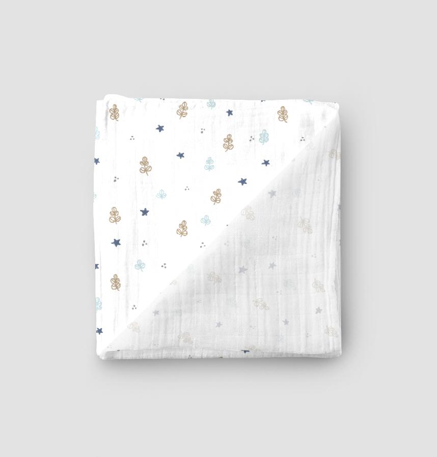 手描きの星と小さい葉っぱデザイン♡ブルー×ベージュ