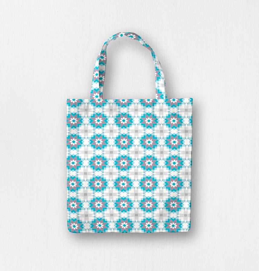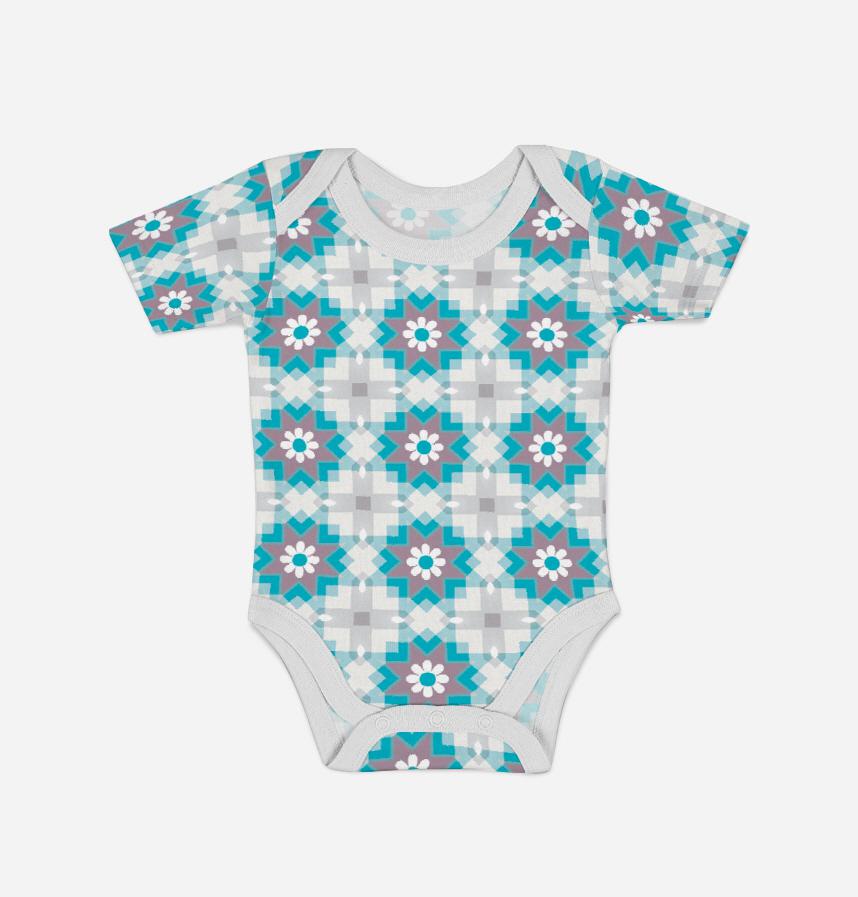 パターン説明 幾何学パターンと花の調和したパターンデザイン-ミント