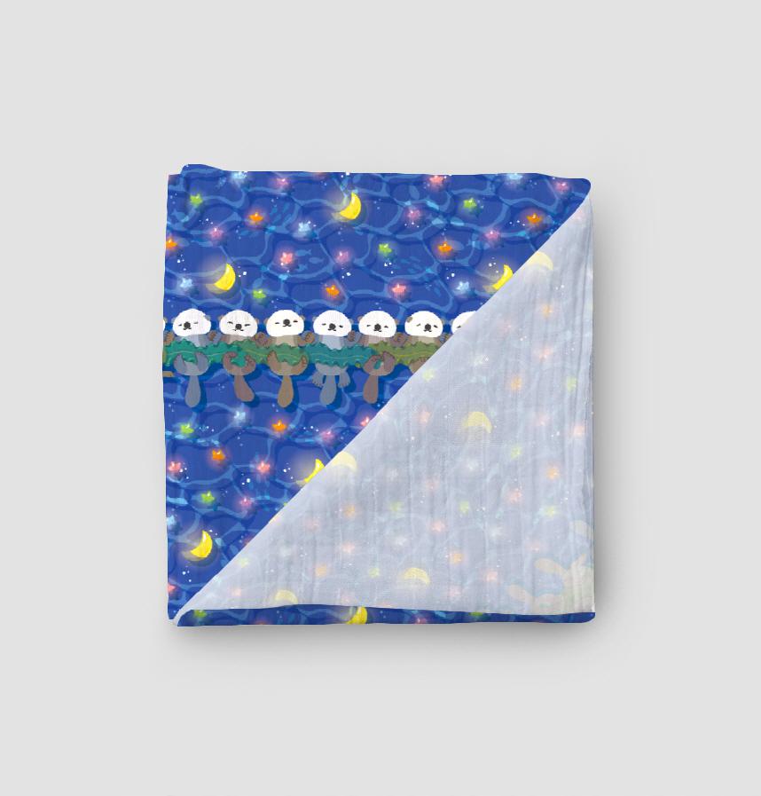パターン説明 星と月が浮かぶ海の上で、ラッコが手をつないで寝ています。