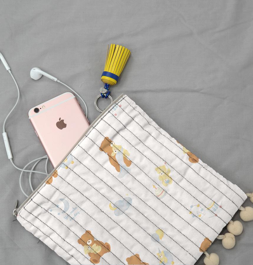 手描き風のくまのぬいぐるみ柄です。ベビーモチーフをあしらい可愛らしく上品なイメージです。