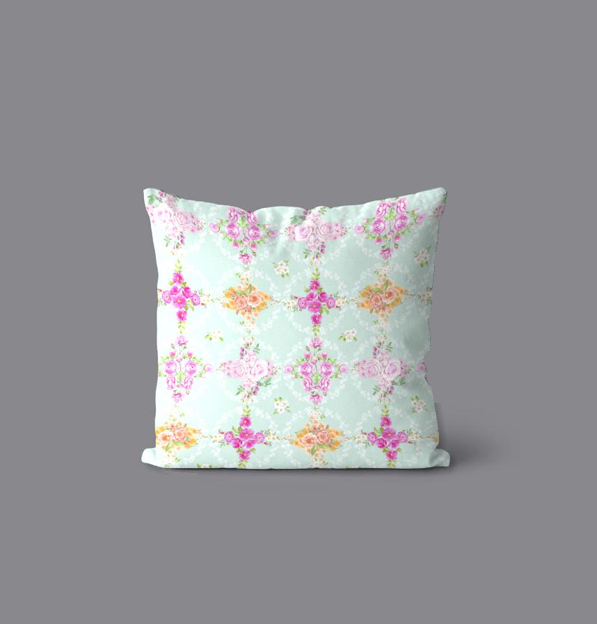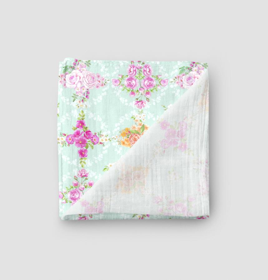 水彩で描いたバラの花束を、白い花のサークルで囲み、縦横に並べました。