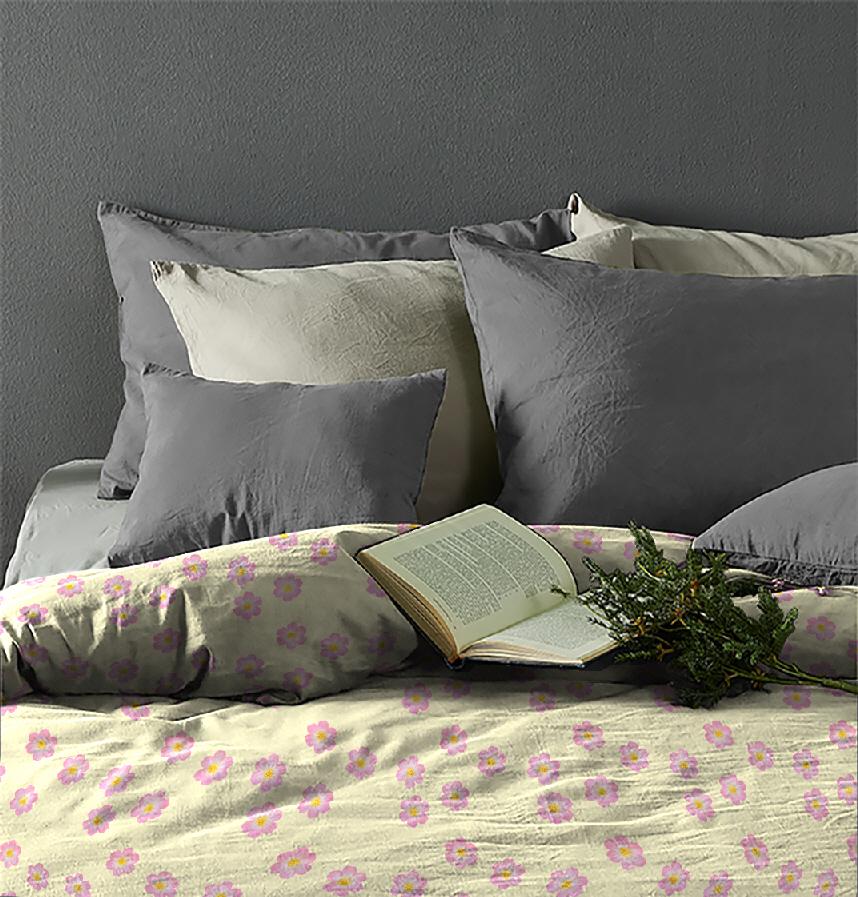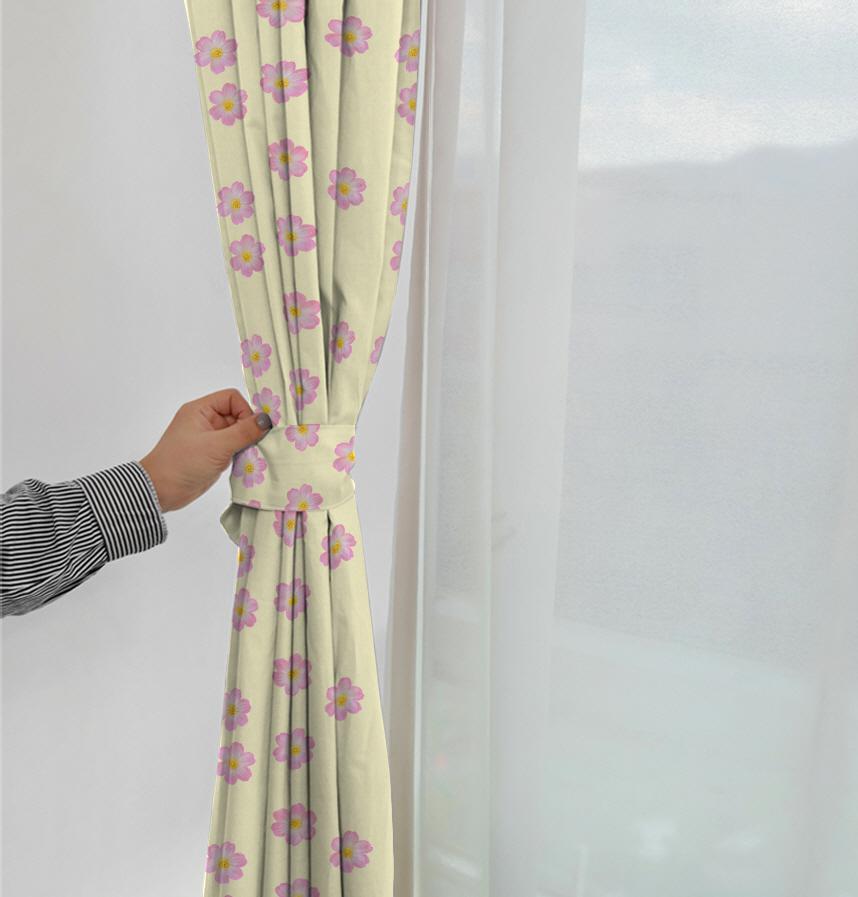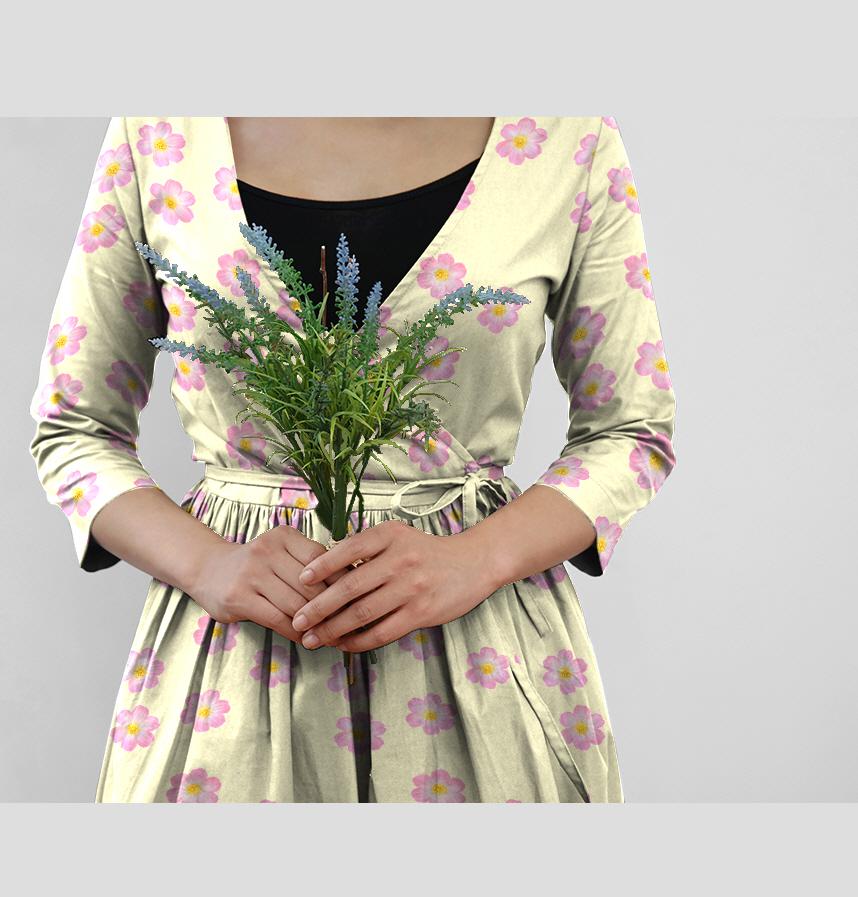 パターン説明 淡い黄色地ピンクの花柄