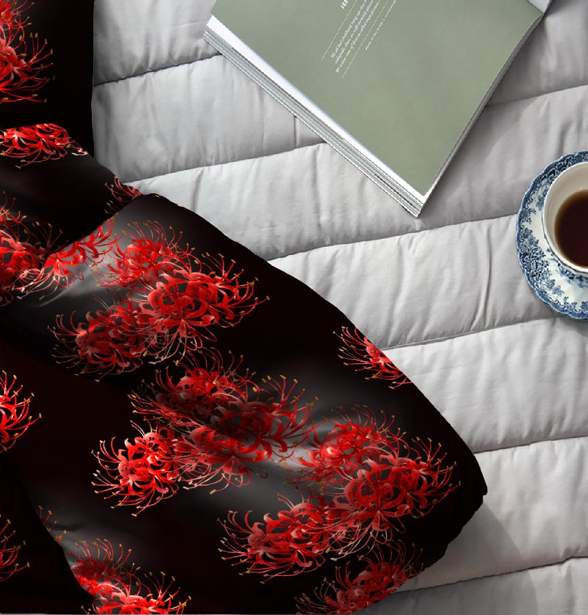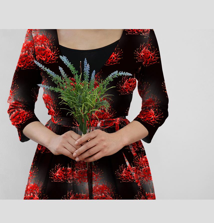 優雅な赤い彼岸花をパターンにしました。シックで上品なイメージです。