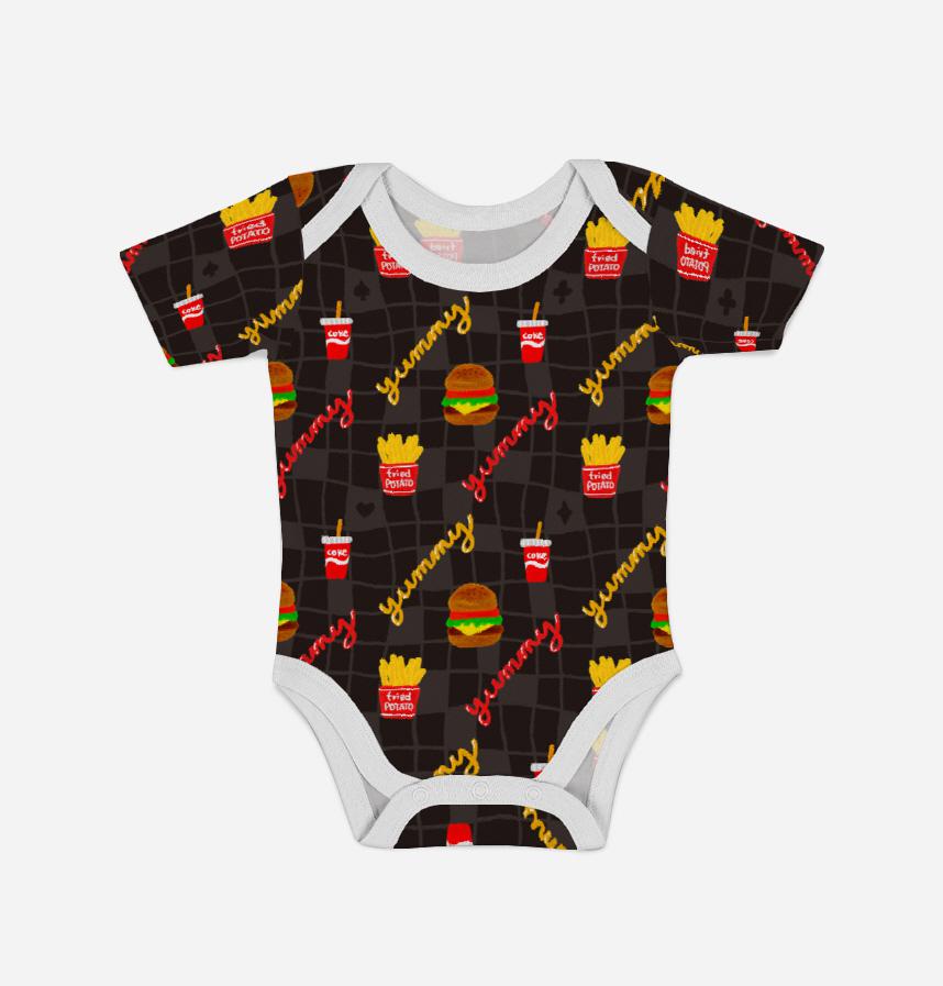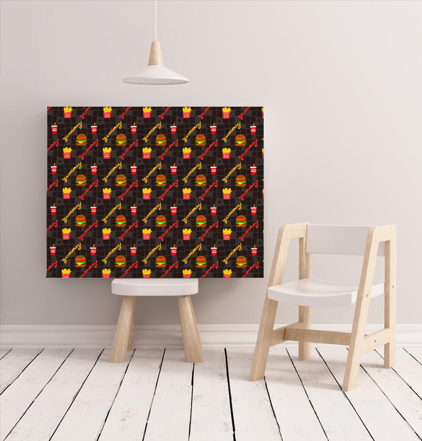 パターン説明 キッチュな感じのかわいいバーガー、フライドポテト、コーラパターン