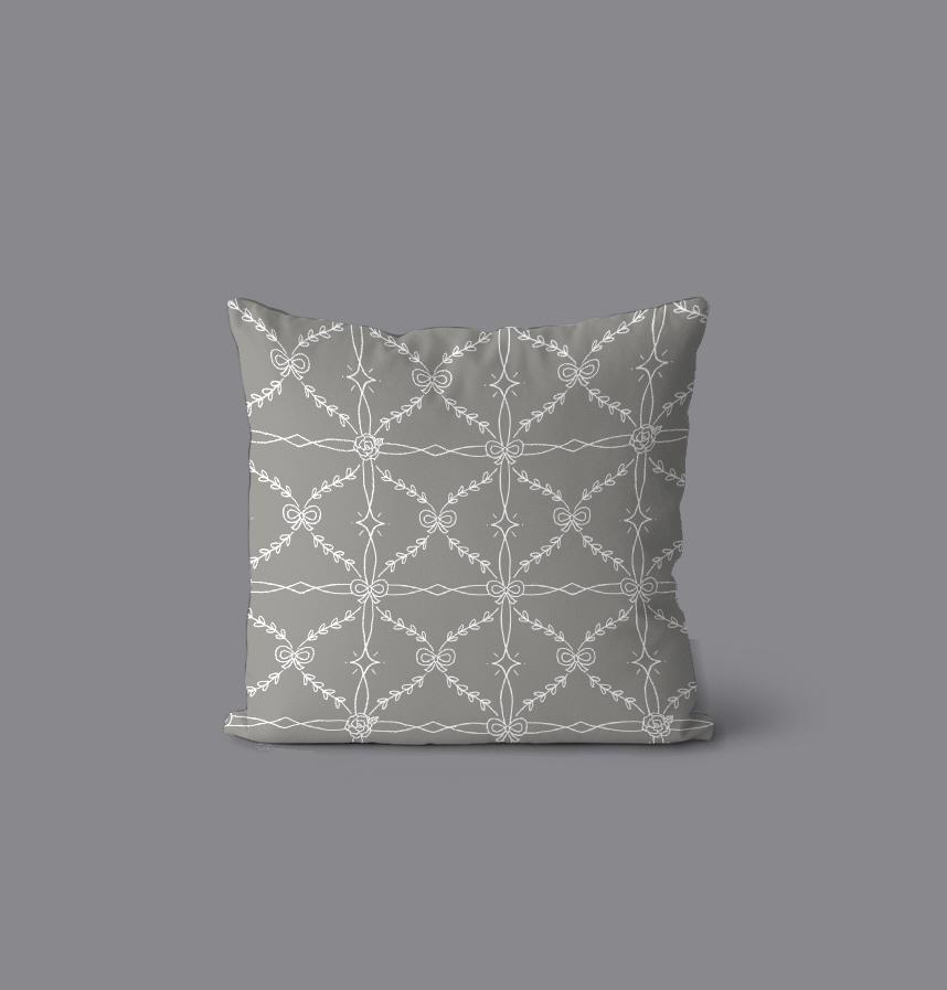 パターン説明 女性らしく優雅なリボンとバラのつるが調和したラインドローイングパターン