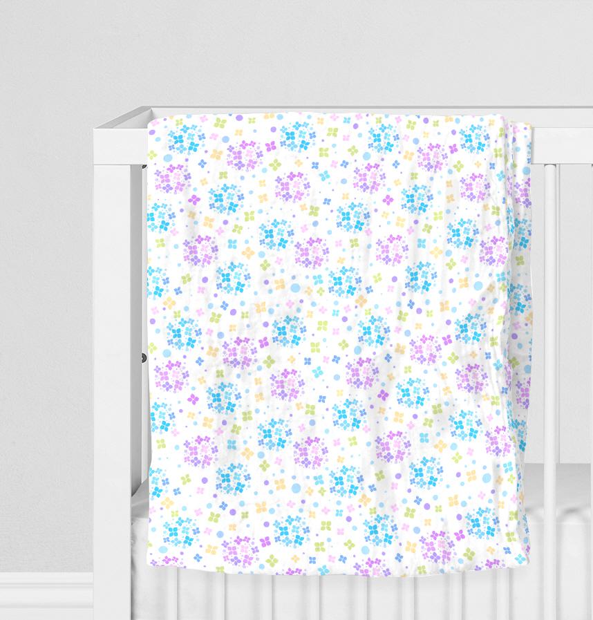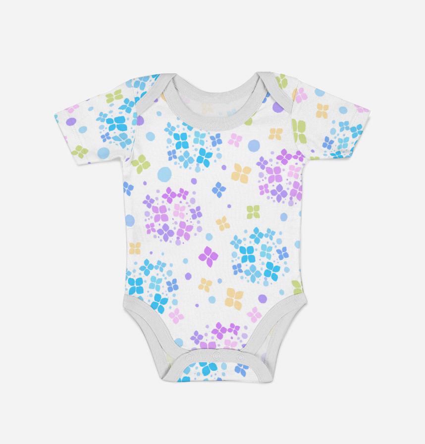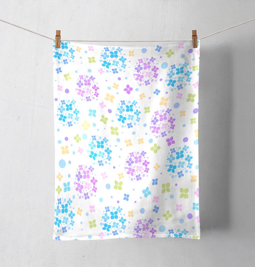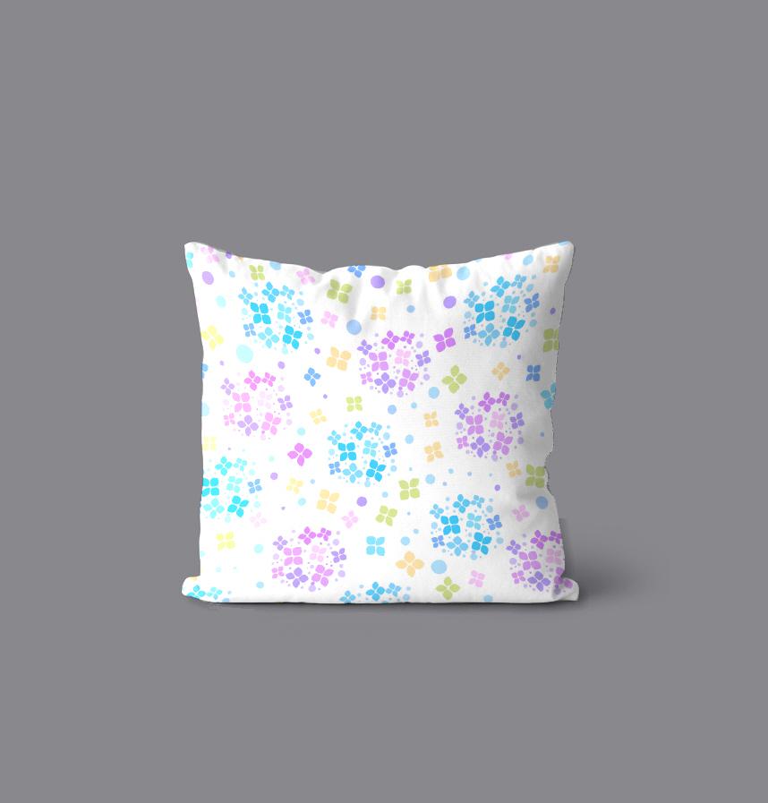 パターン説明 あじさいの花と雨粒をイメージした丸でパターンを作りました。